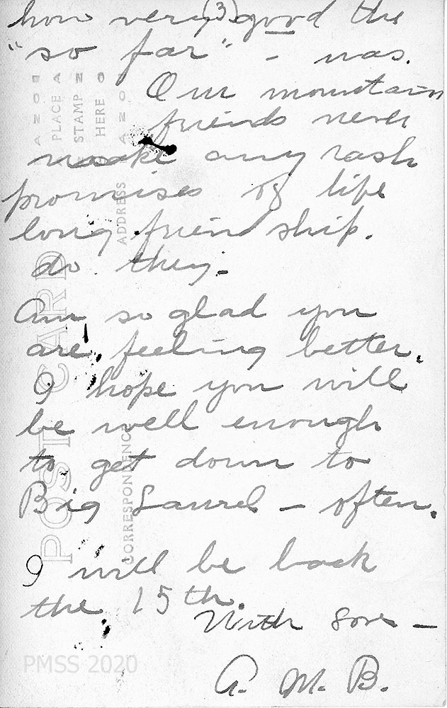 TAGS: Anna Brockschlager, correspondence, postcards, Big Laurel housekeepers, Miss Fightmaster, Christmas at Big Laurel, Ethel Zande, Katherine Pettit, Luigi Zande, Miss Krause, Miss Anna Wulf Pishzak, Maggie Turner, Big Laurel garden, Vevay, IN