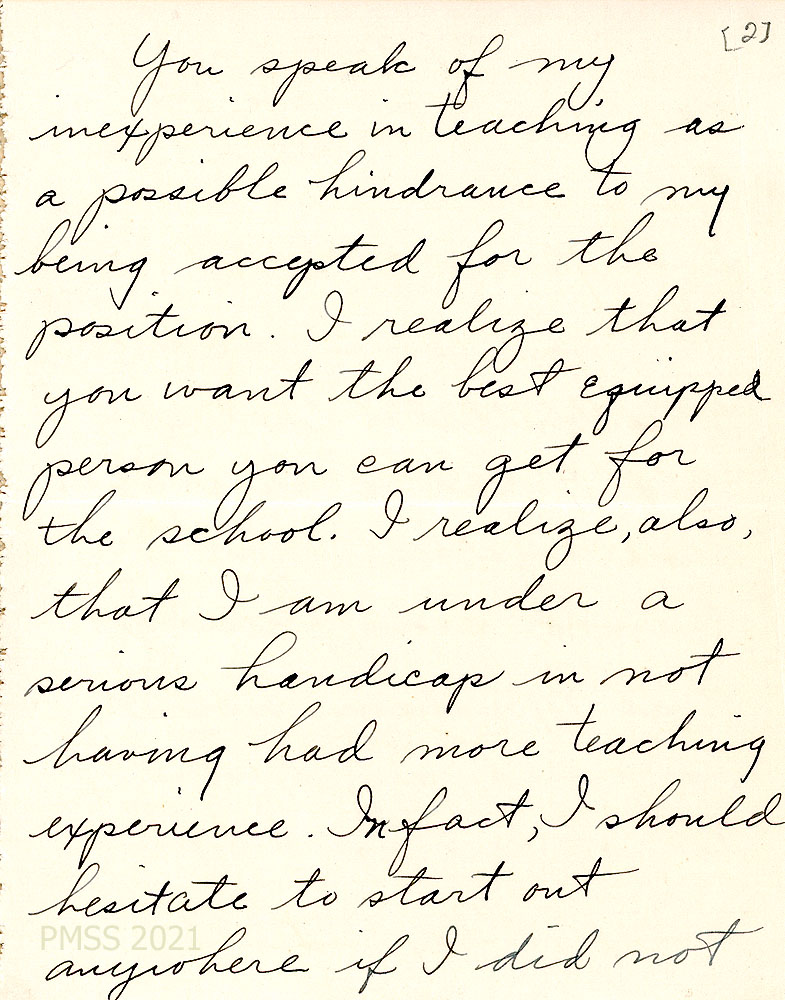September 1925 – June 1927 Teaching At PMSS