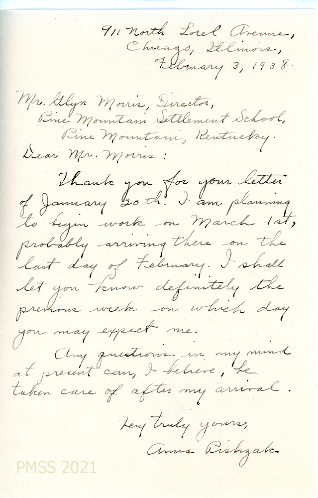 [040], [040a] January 14, 1938. Two-page letter to Pishzak from [unsigned, likely Morris], responding to her December 12th telegram. The position at the Medical Settlement is the result of needing someone to live there; describes plans for training Practice House girls in home economics there. Also, a small power plant will be installed there for electrical lighting and to show movies to the community.