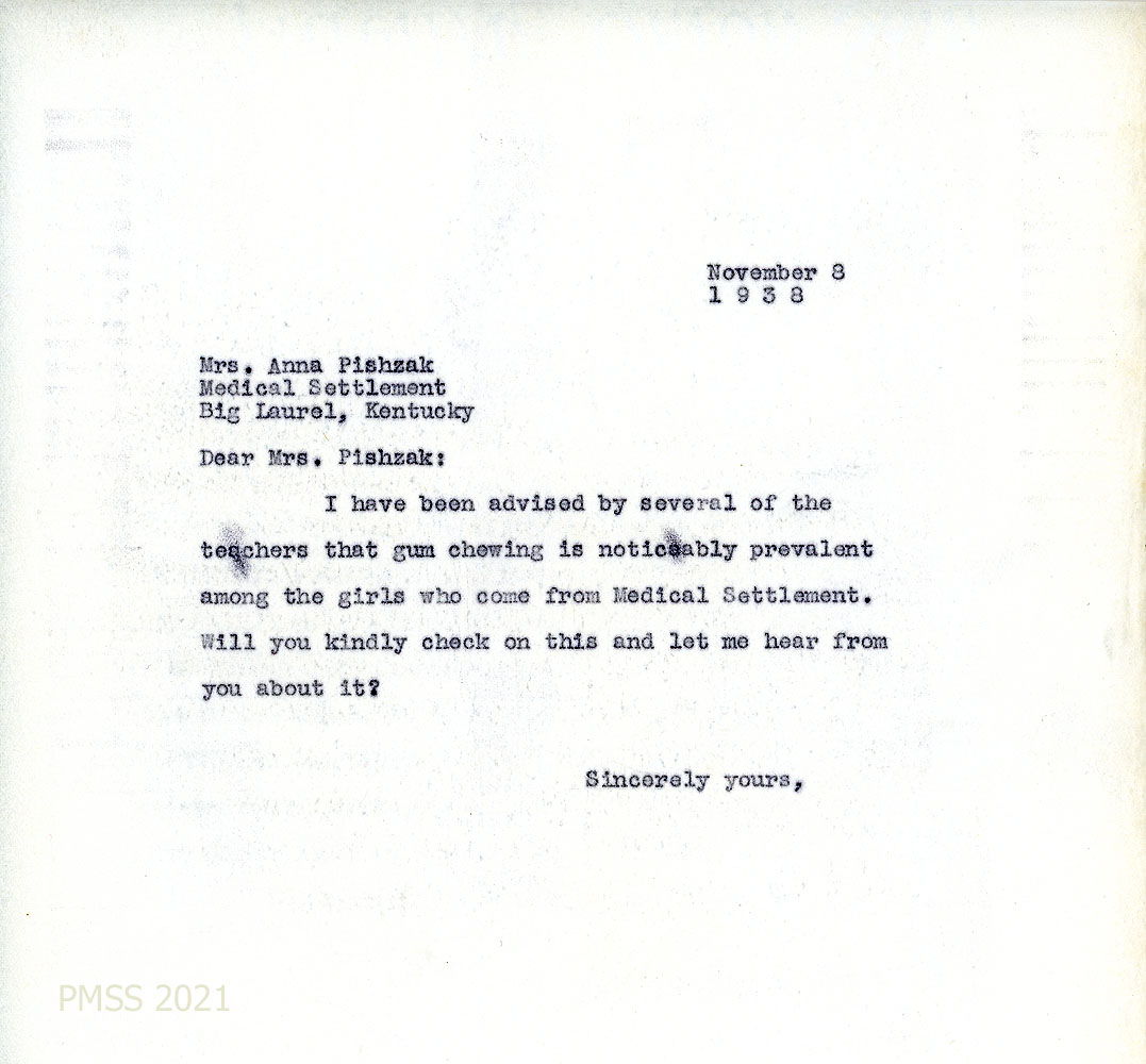 [061] November 8, 1938. To Pishzak from [unsigned], asking about prevalence of gum-chewing among Medical Settlement girls.