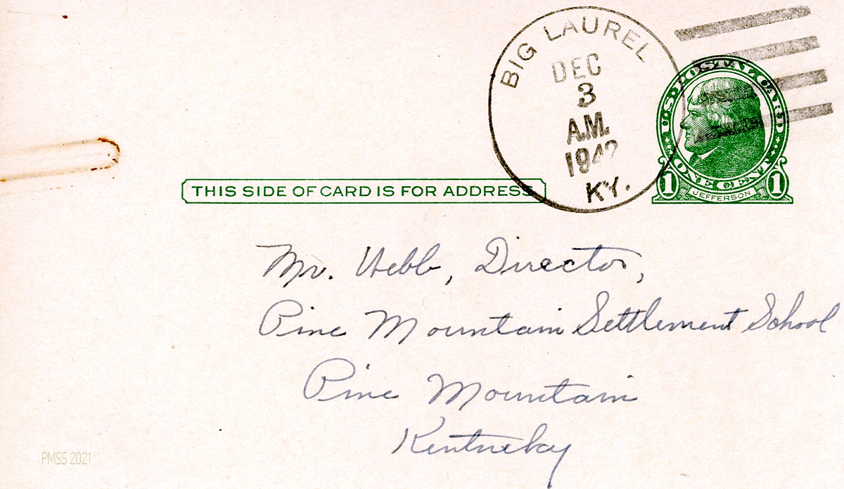 [071] Postcard from Big Laurel, KY, address side, to Webb.