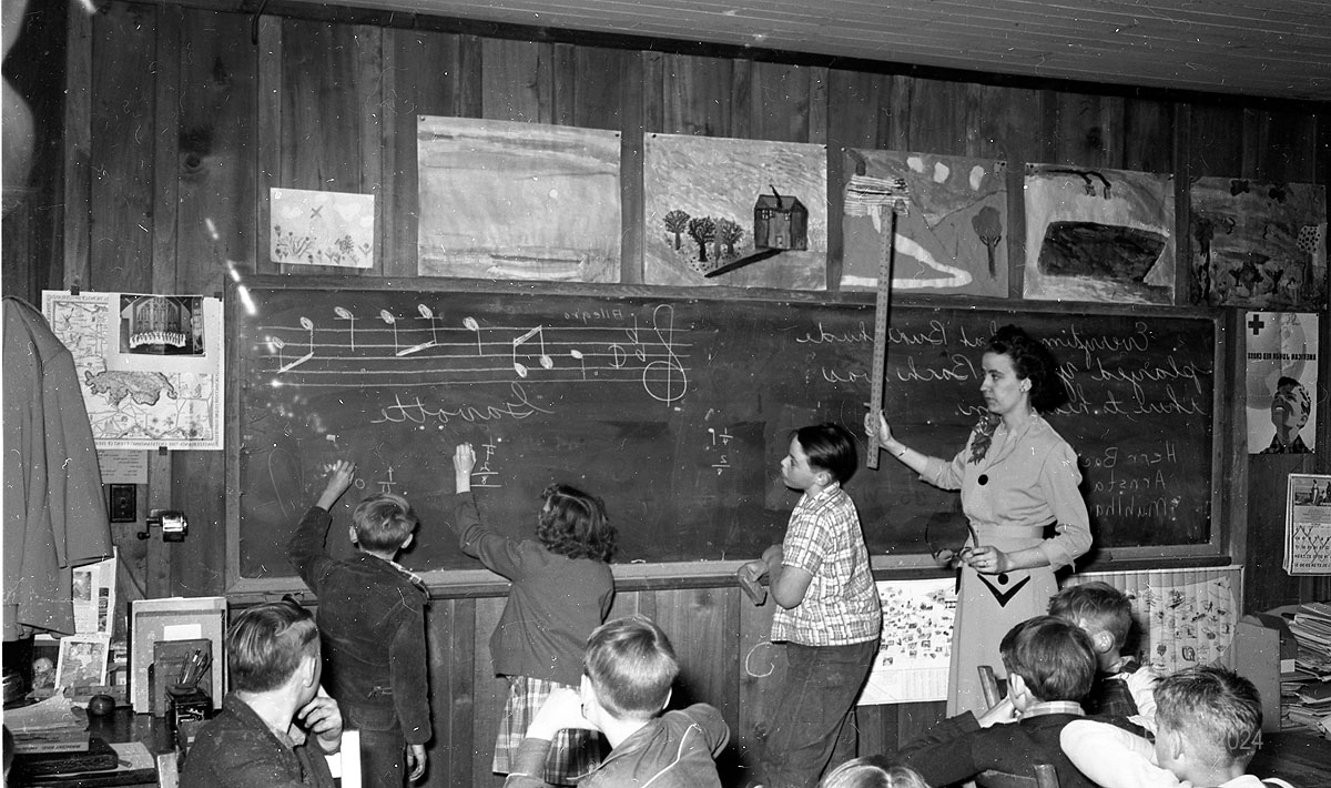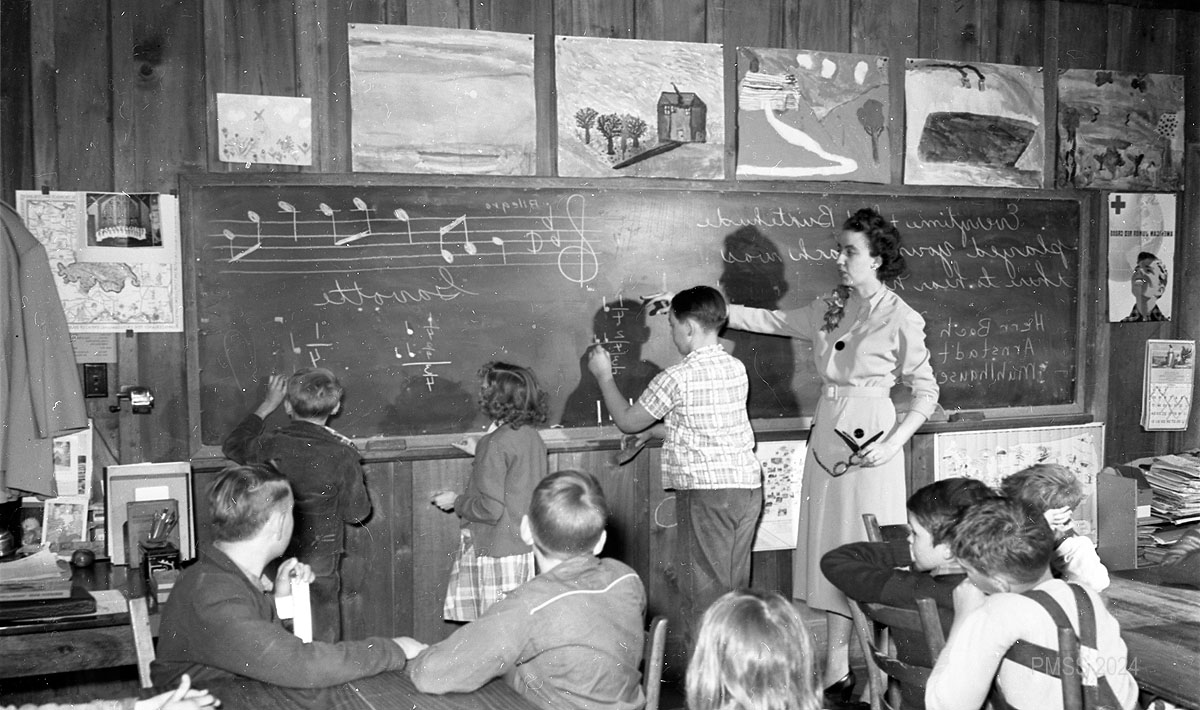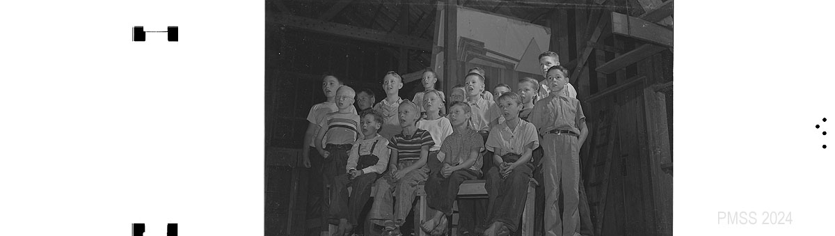 This small group of photographs taken by Arthur W. Dodd capture the instruction in a music class for children at the School in the 1940s. The instructor, Golda Pensol was a highly skilled teacher who had a particular interest in music. The class was offered as an extra curriculum opportunity for interested students.