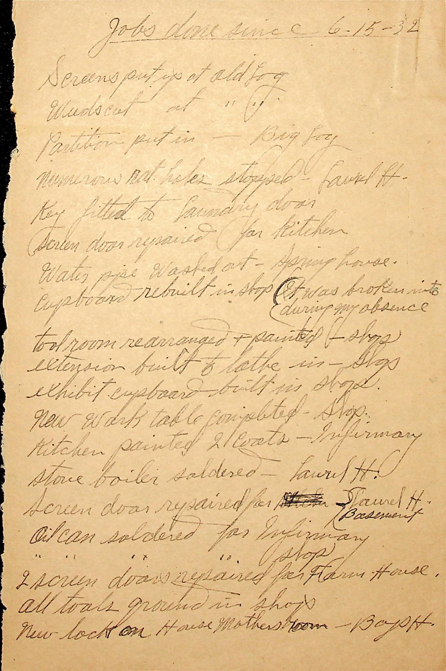 (18) June 15, 1932. [No salutation]. Note listing “Jobs done since 6-15-1932.”