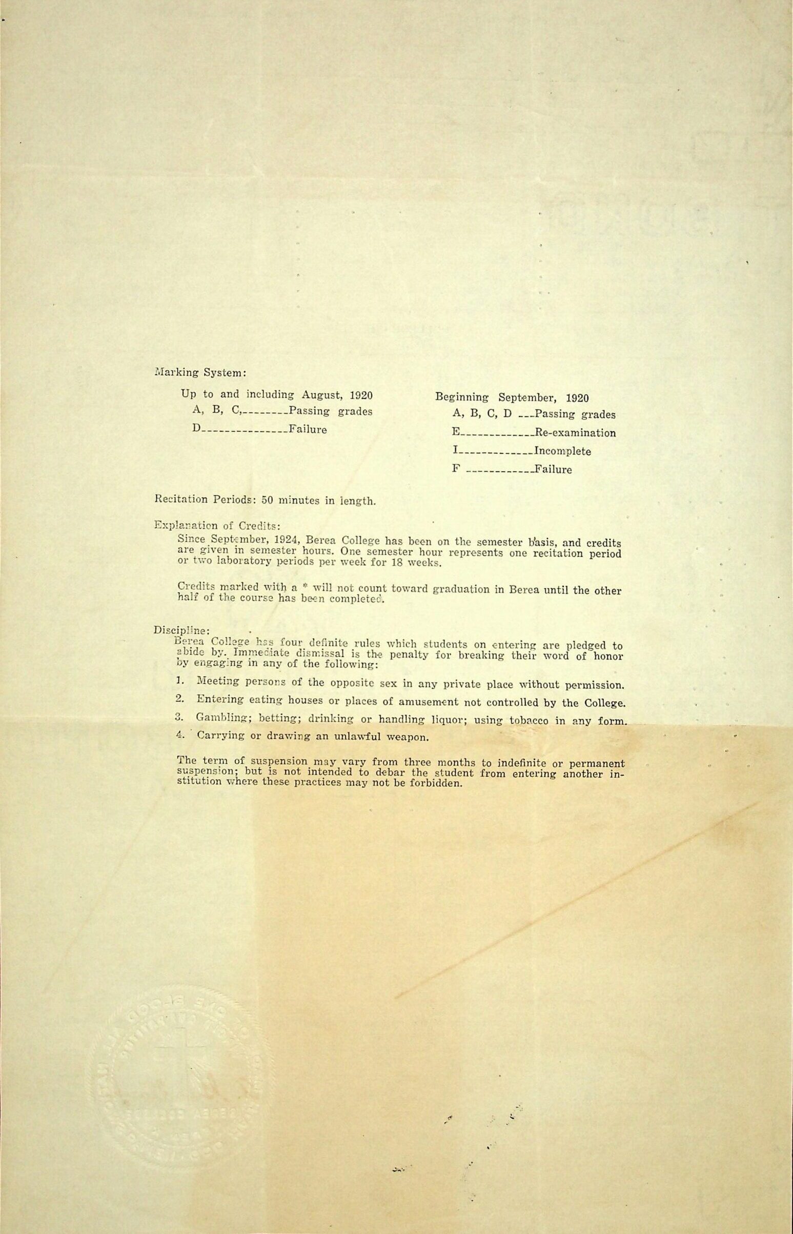 (81) Reverse side of Statement of Credits (80), showing Marking System, Explanation of Credits and Discipline.
