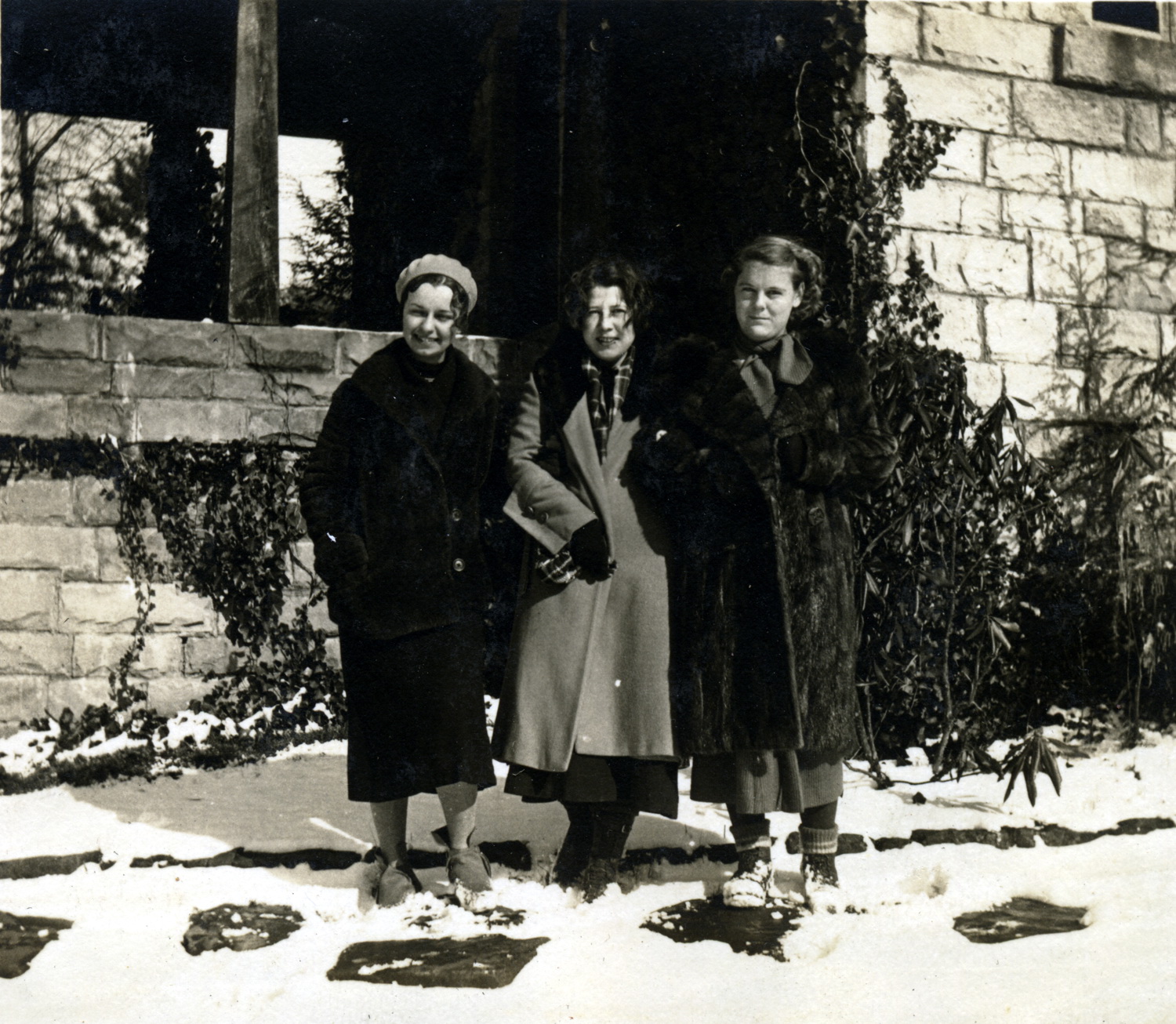 - Oradelle Malan, Alice Cobb, and “Barbie” [Barbara] Faulkner, standing in the snow. [X_100_workers_2562c_mod.jpg]