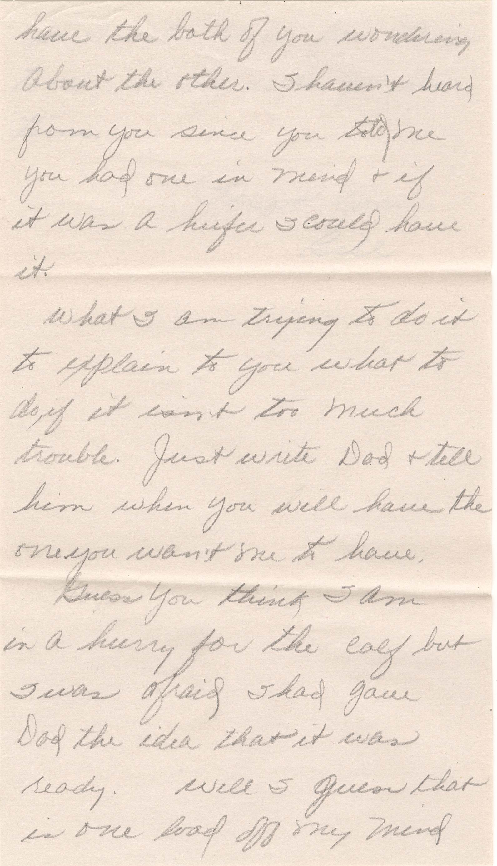 Dad has been telling me what a fine calf I have. I still feel that I owe you something for it