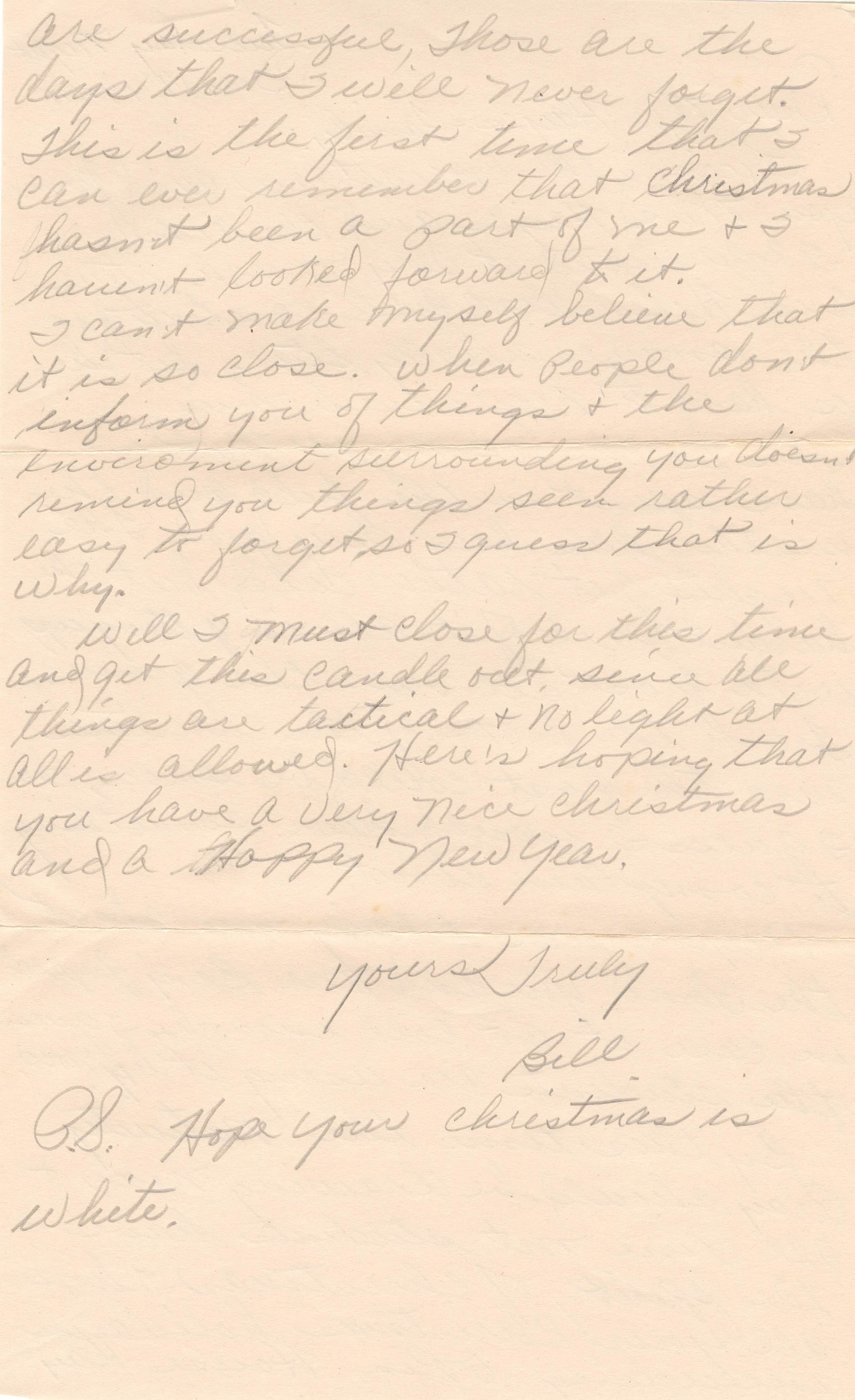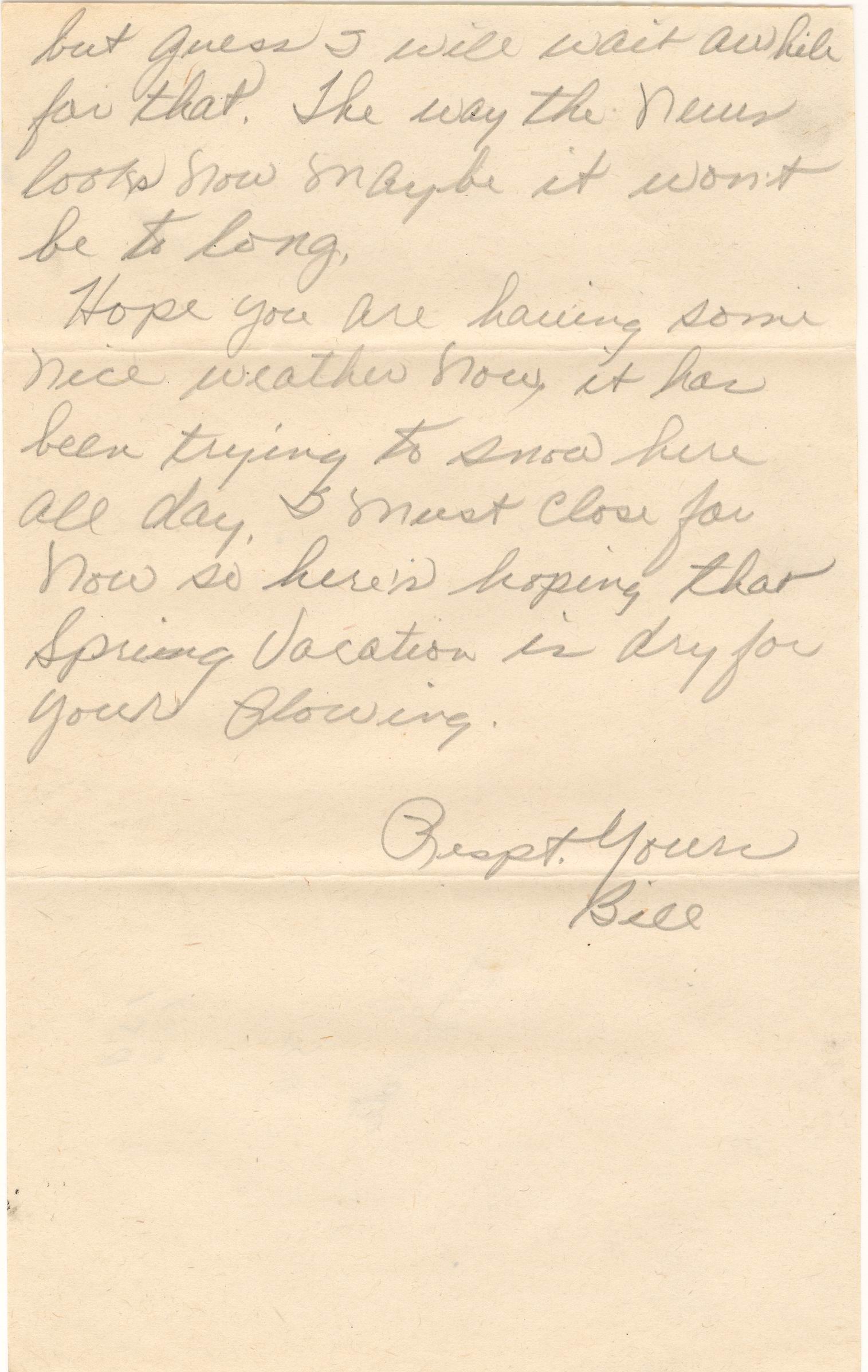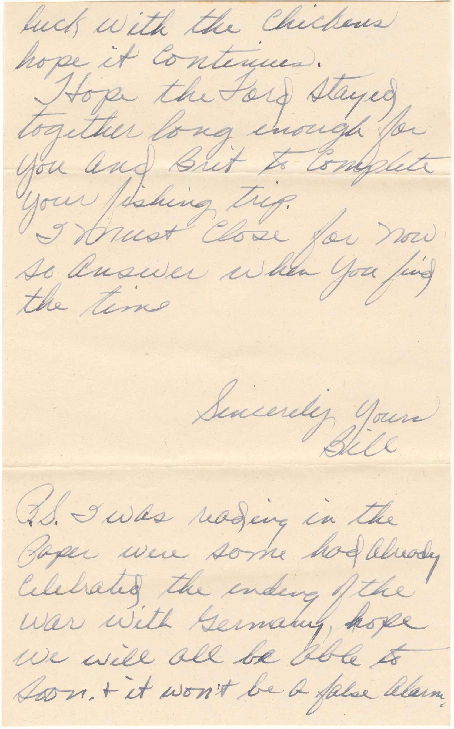Well, Bill drop me a line to let me know about you & your family & everyone. So until I see you good luck.