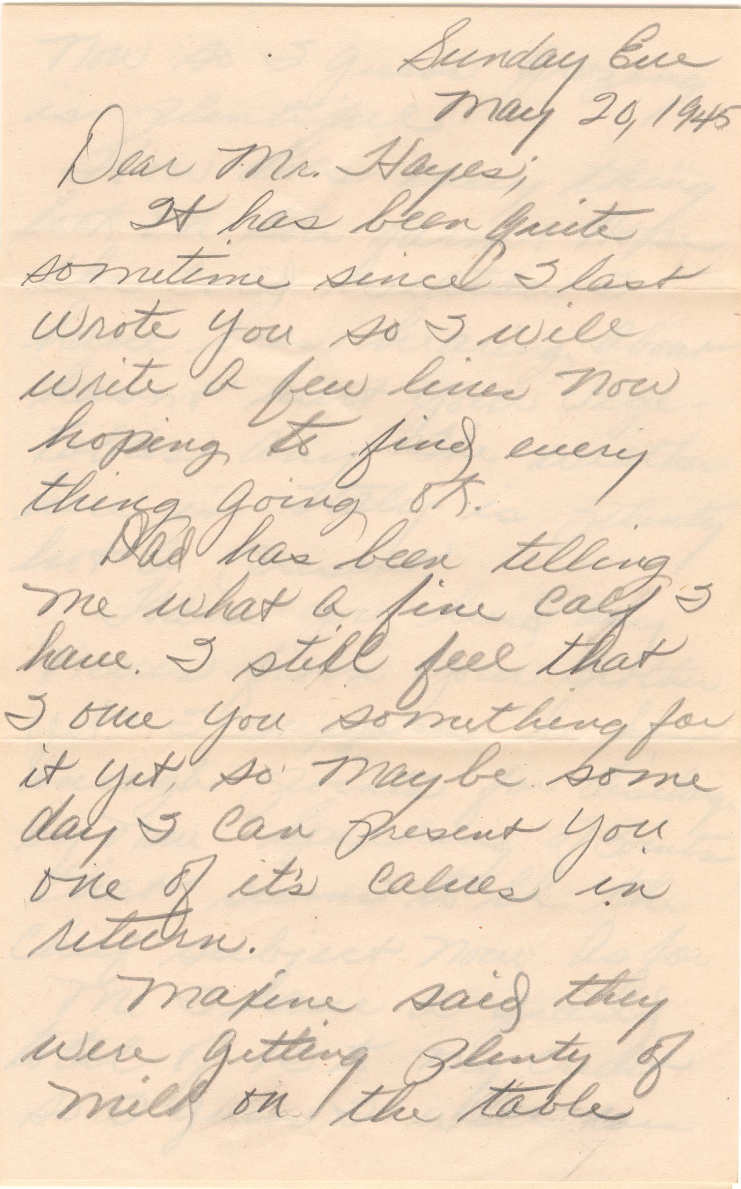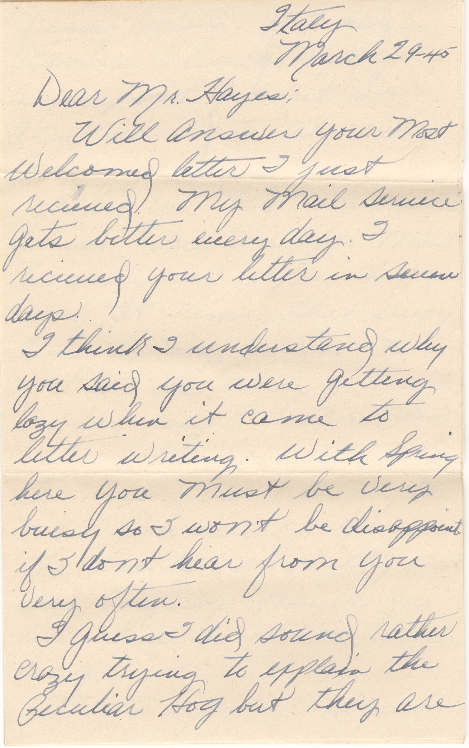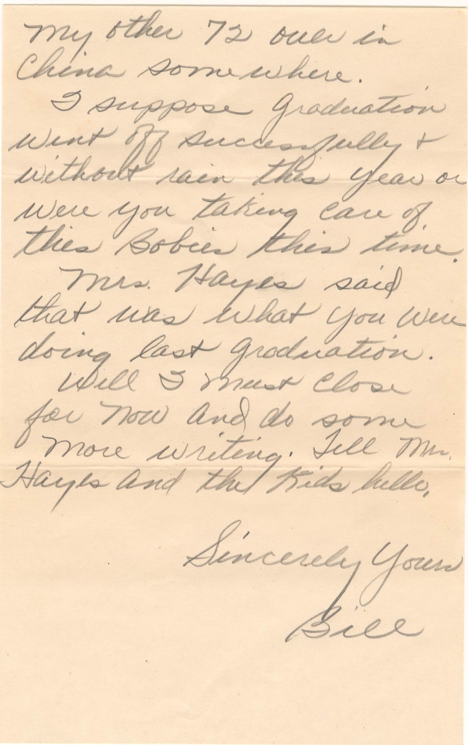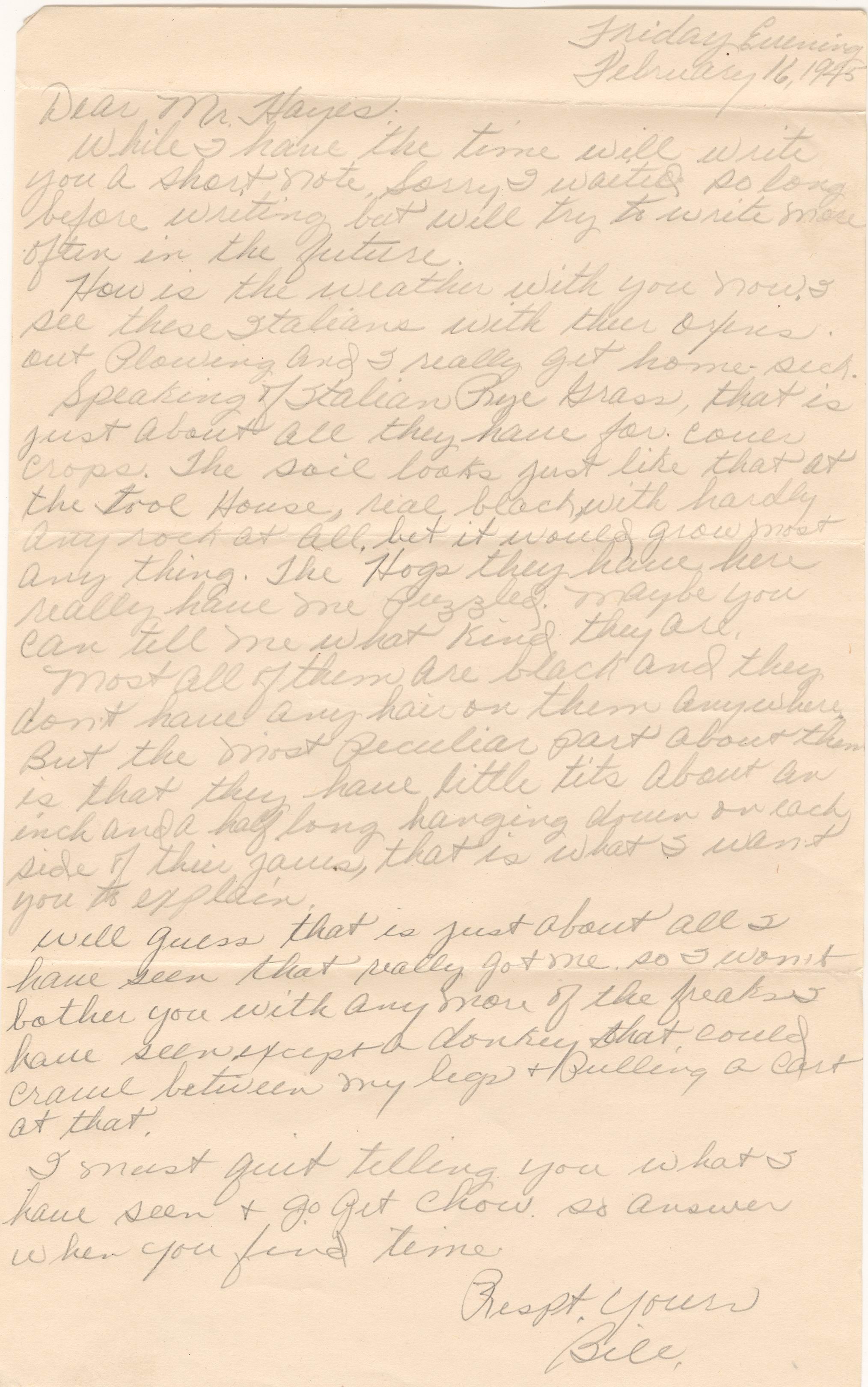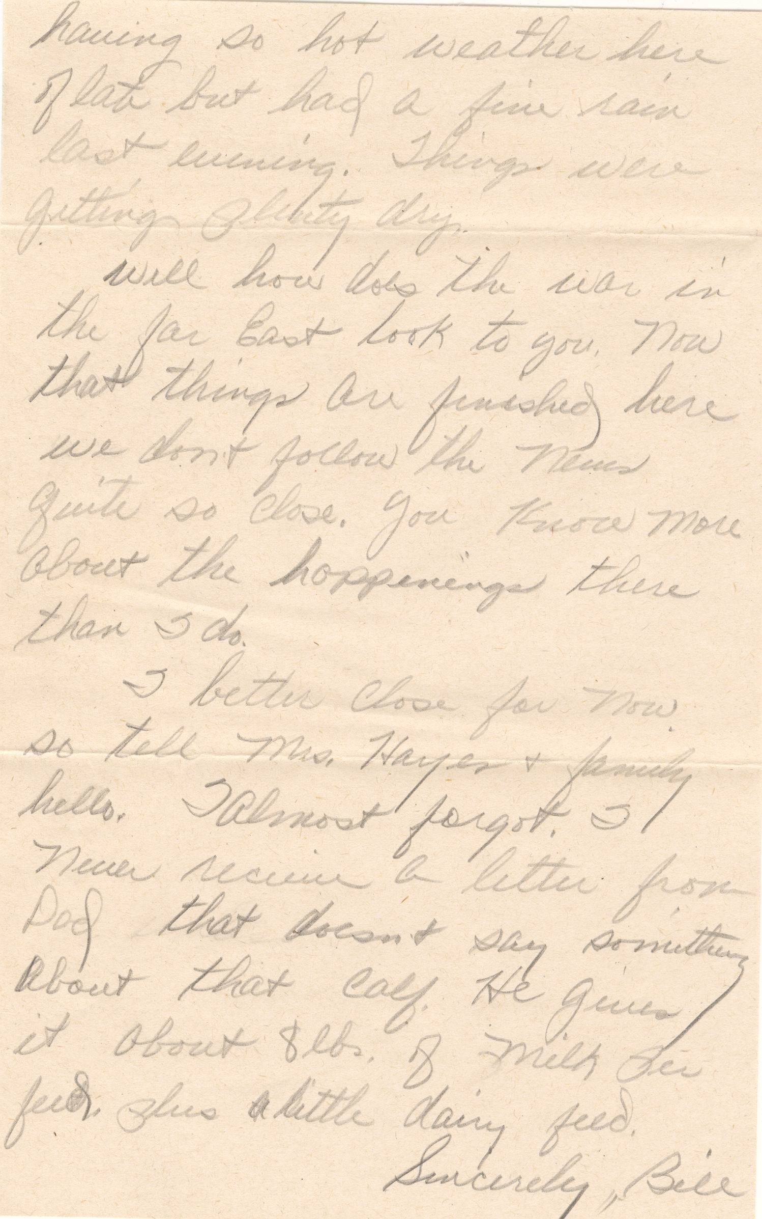 Well I must close for now and do some more writing. Tell Mrs. Hayes and the kids hello.