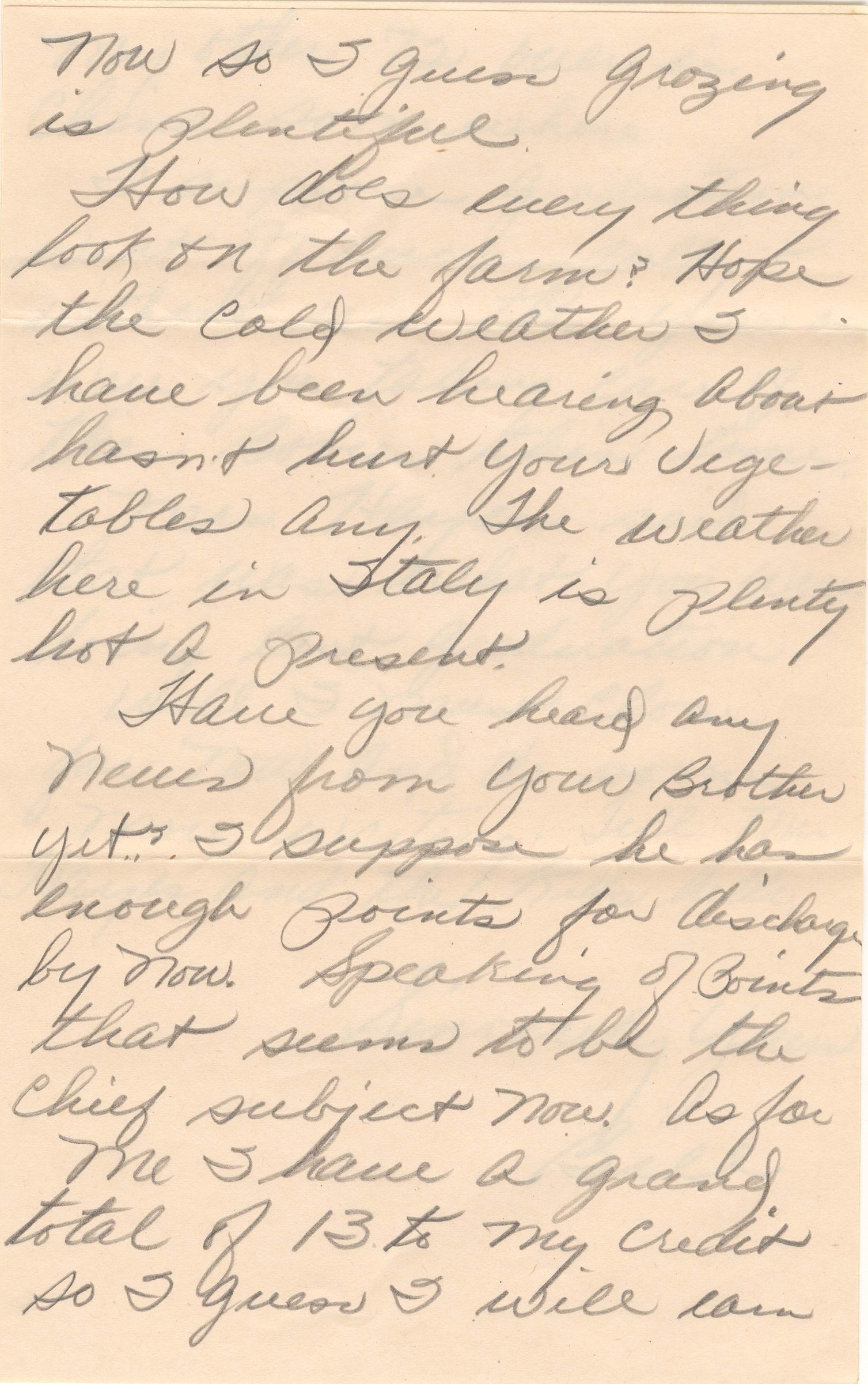 about hasn’t hurt your vegetables any. The weather here in Italy is plenty hot a present.