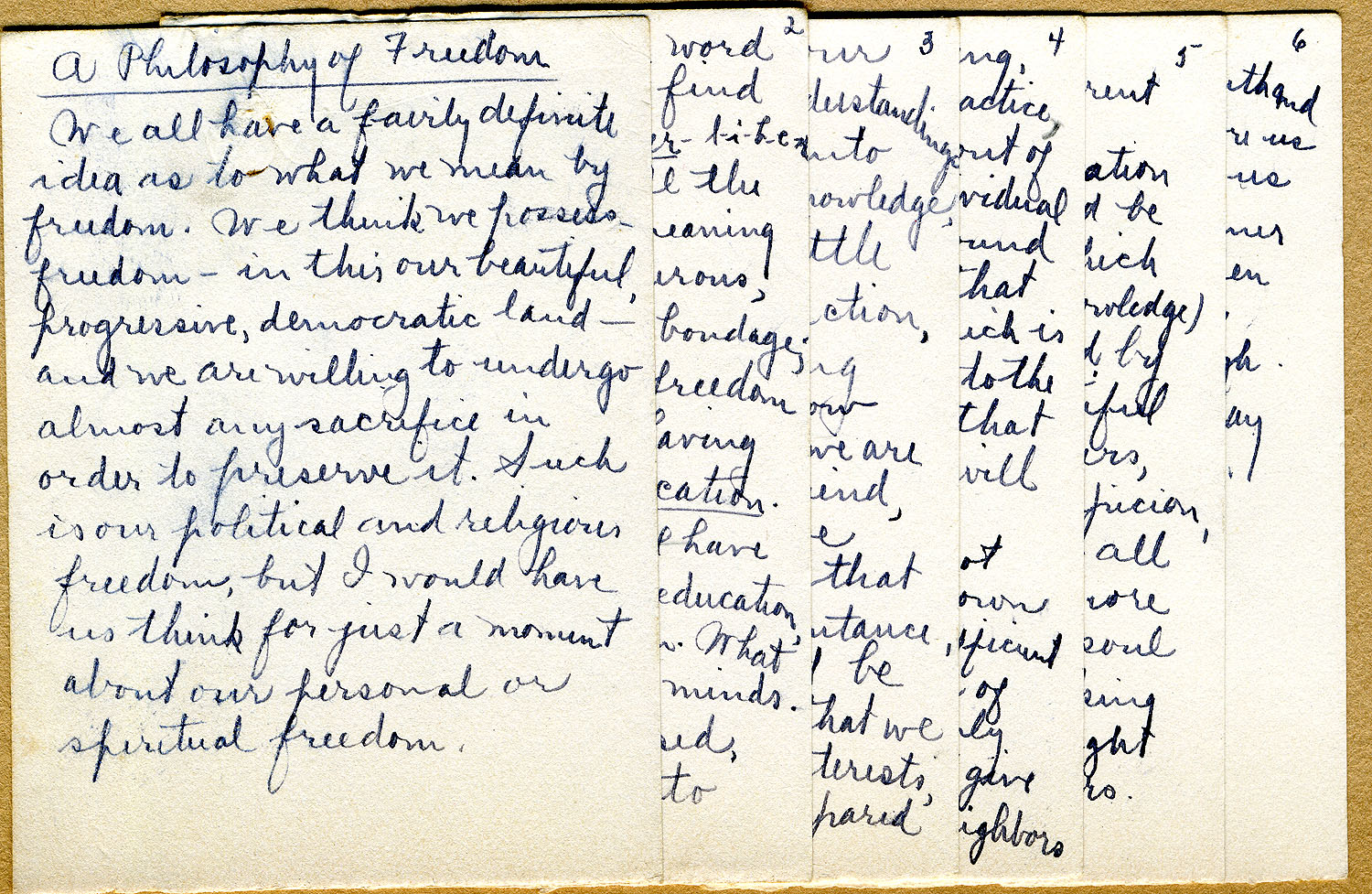 - Birdena Bishop. “A Philosophy of Freedom” 1942, p. 01. [1942_graduation_008.jpg]