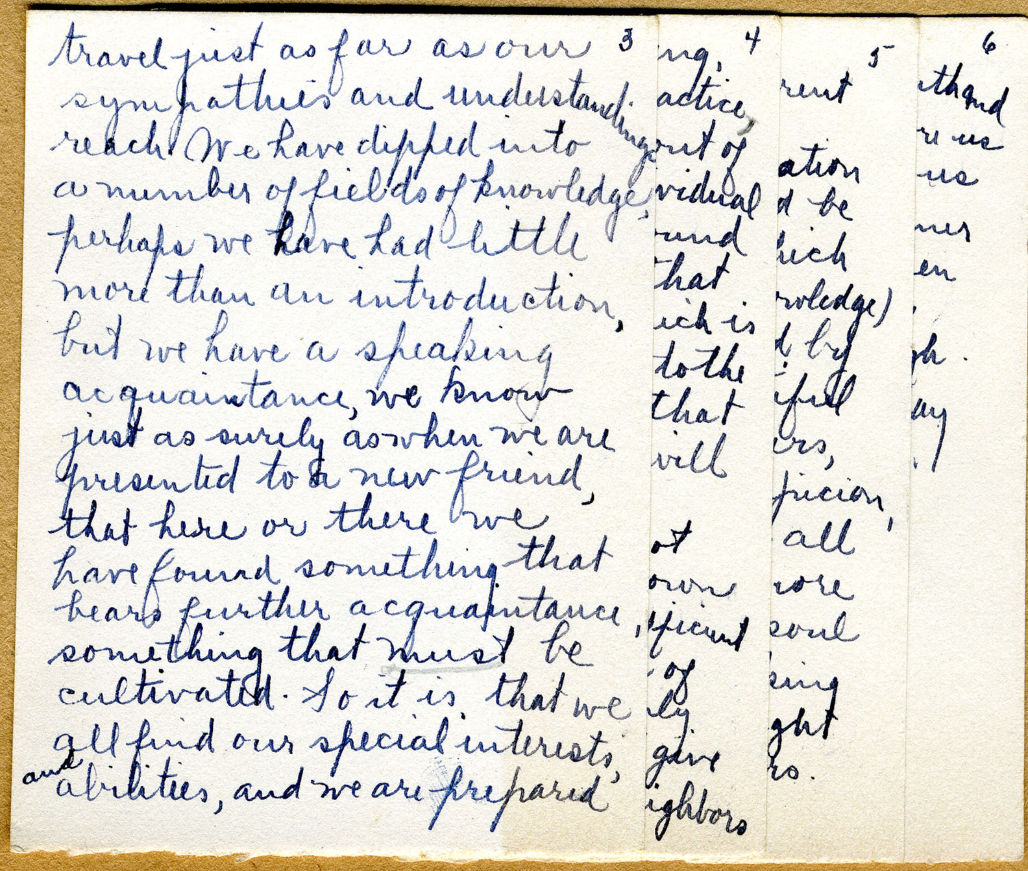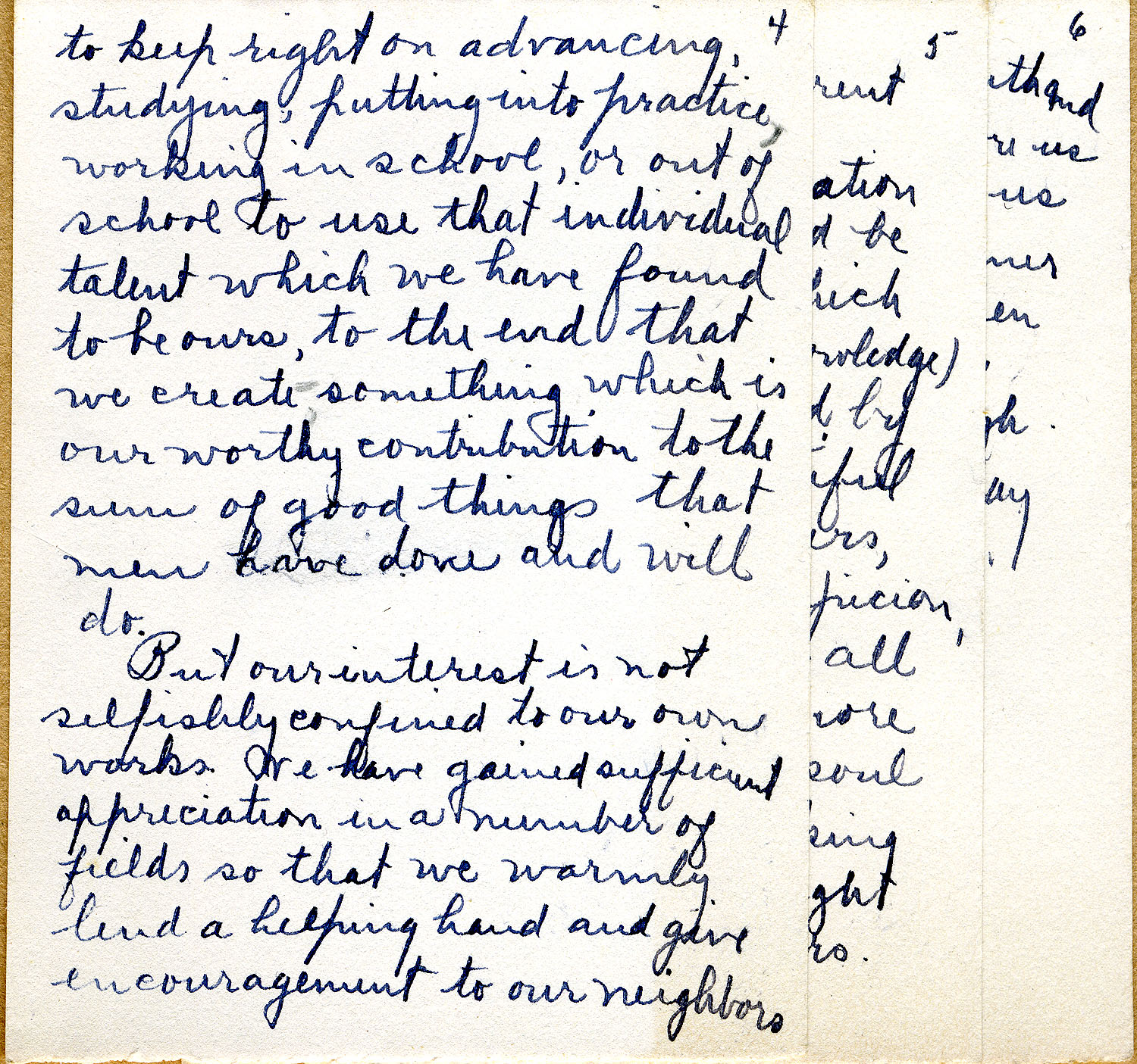 But our interest is not selfishly confined to our own works. We have gained sufficient appreciation in a number of fields so that we warmly lend a helping hand and give encouragement to our neighbors whose labors lie in different directions.