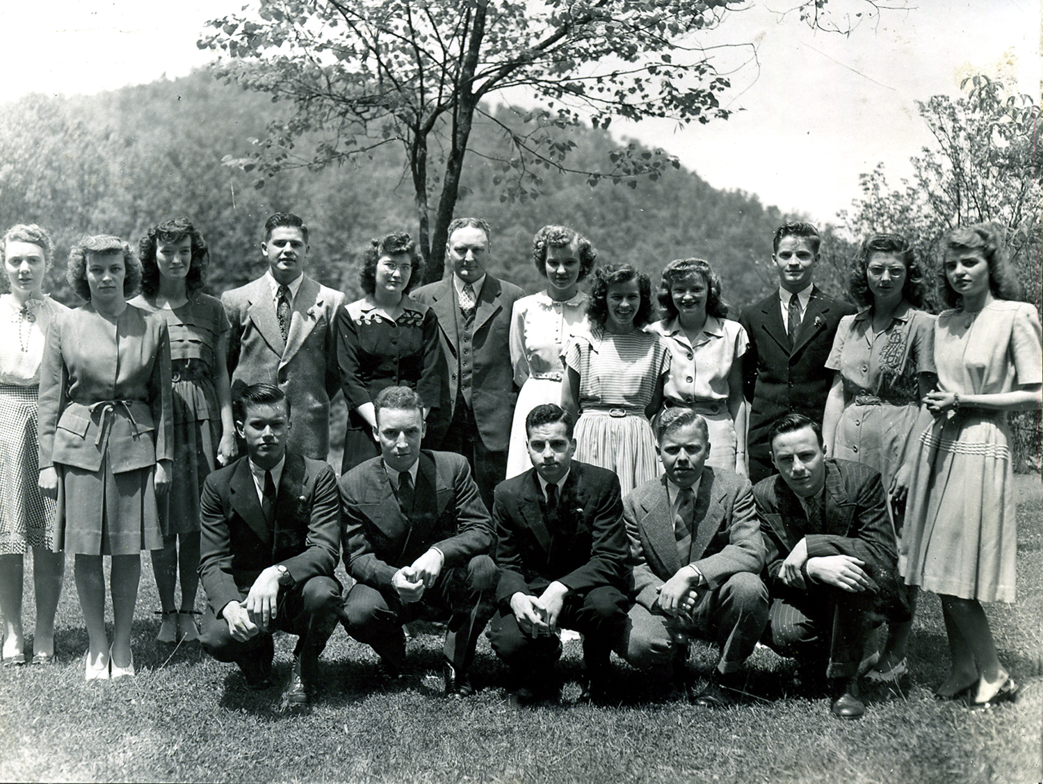 - Freshman Class 1945-1946. (First Row) Margaret Slusher, Frances Selvey, Naomi King, Birdie Miniard, Reba Blevins, Geraldine King, Bess Taylor, Eli Ison. (Second Row) Fannie Mae Caldwell, Margie Belcher, Ora Mae Boggs, Donald Freemen, Carlos Banks, Leone Sturgill, Emmitt Patterson, Bonnie Reynolds, Arnie Halcomb, Miller Howard. (Back Row) Ralph Scott, Earl Brown, Walter Blackson, Clayton Sturgill, Clarence Garrett, Harold Caudill, Arles Centers, Ray Bird. [nace_1_044b.jpg]