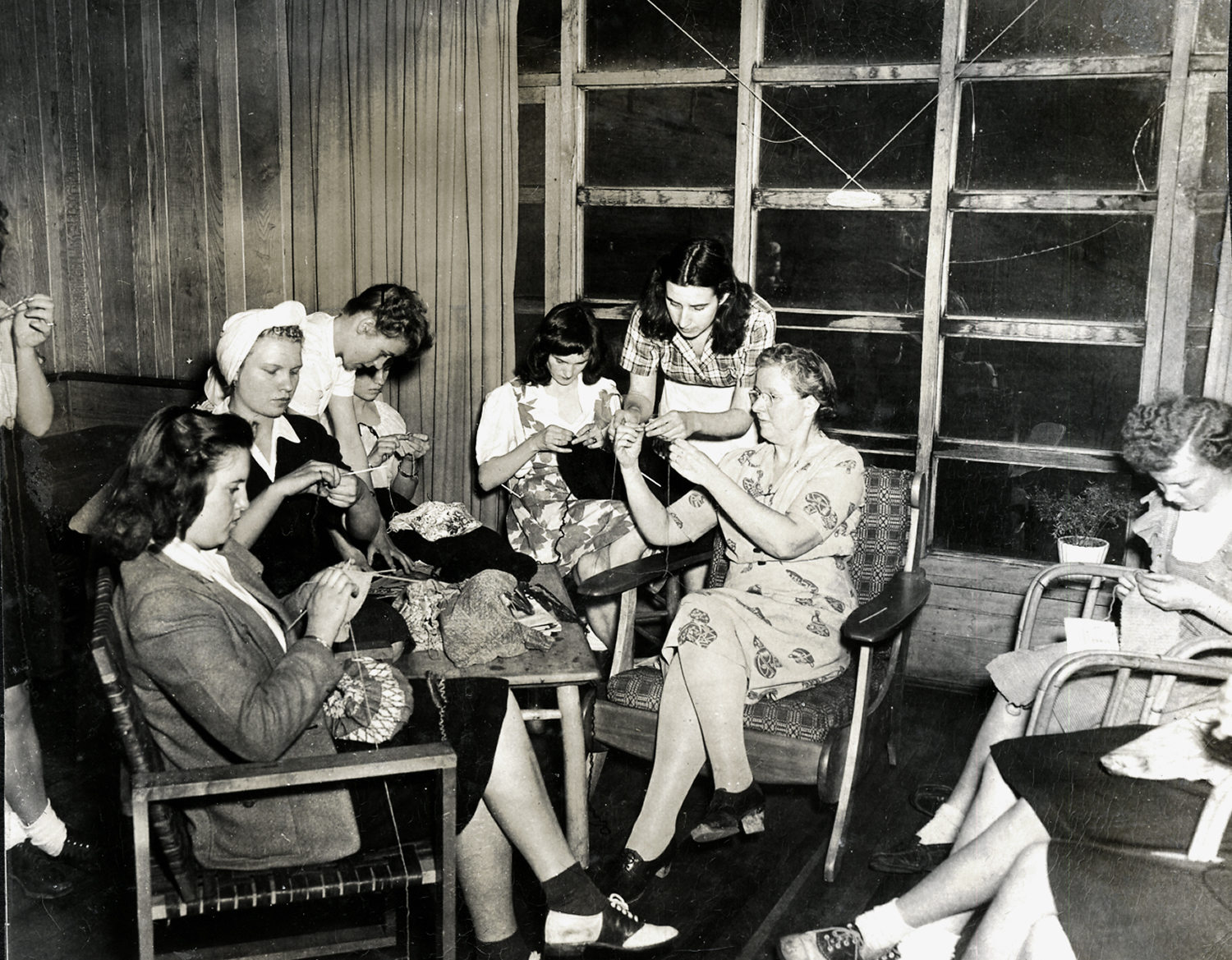- Mrs. LaRue’s Knitting Group, 1946. Wanda Lee Copler, Despres Scott, Genella Boggs, Hazle Kilgore, Betty Logan, Evelyn Ayers. [nace_1_061b.jpg]