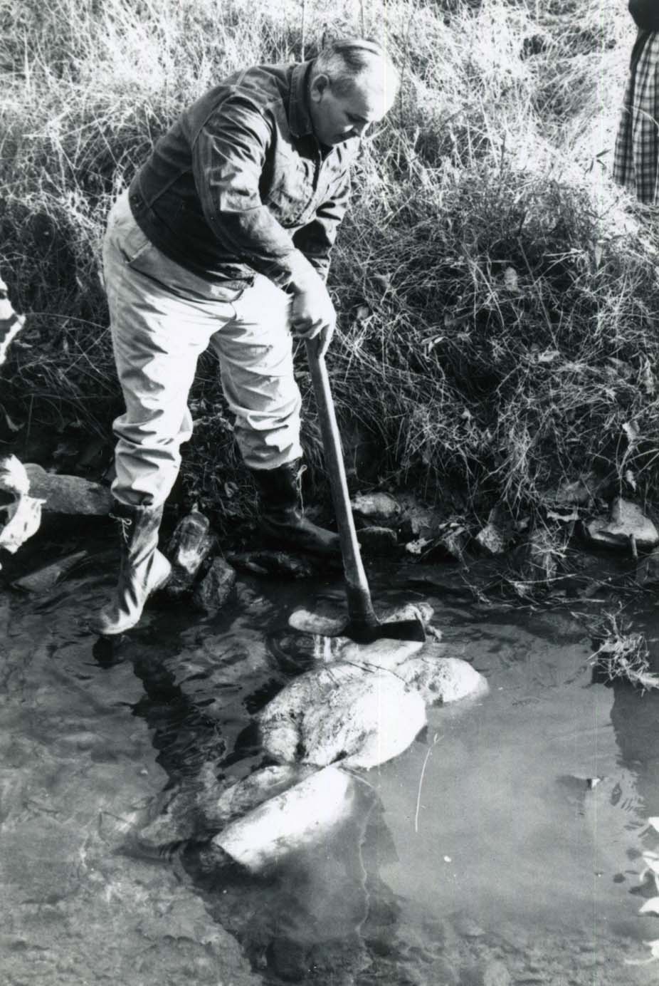 - Alvin Boggs washing skin of steer. [vii_63_life_work_001-111.jpg]