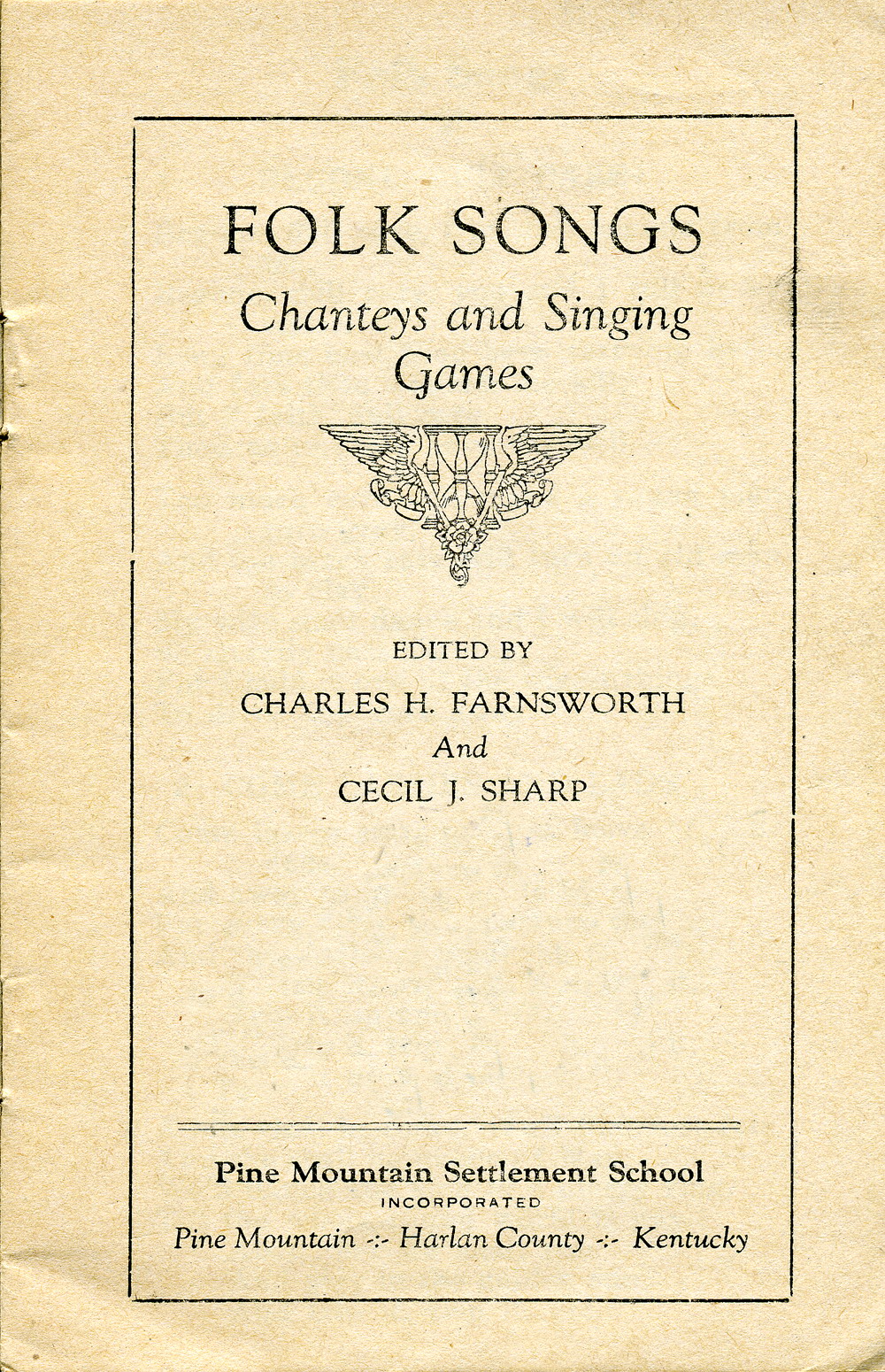 Folk Songs, Chanteys and Singing Games,” edited by Charles H. Farnsworth and Cecil J. Sharp and published by the Pine Mountain Settlement School print shop.