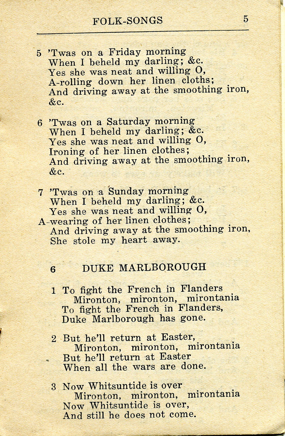 Chance brought me to America in the early days of the war [WWI] … and while here Mrs. John C. Campbell of Asheville, NC told me that the inhabitants of the Southern Appalachians were still singing the traditional songs and ballads which their English and Scottish ancestors had brought out with them at the time of their emigration.