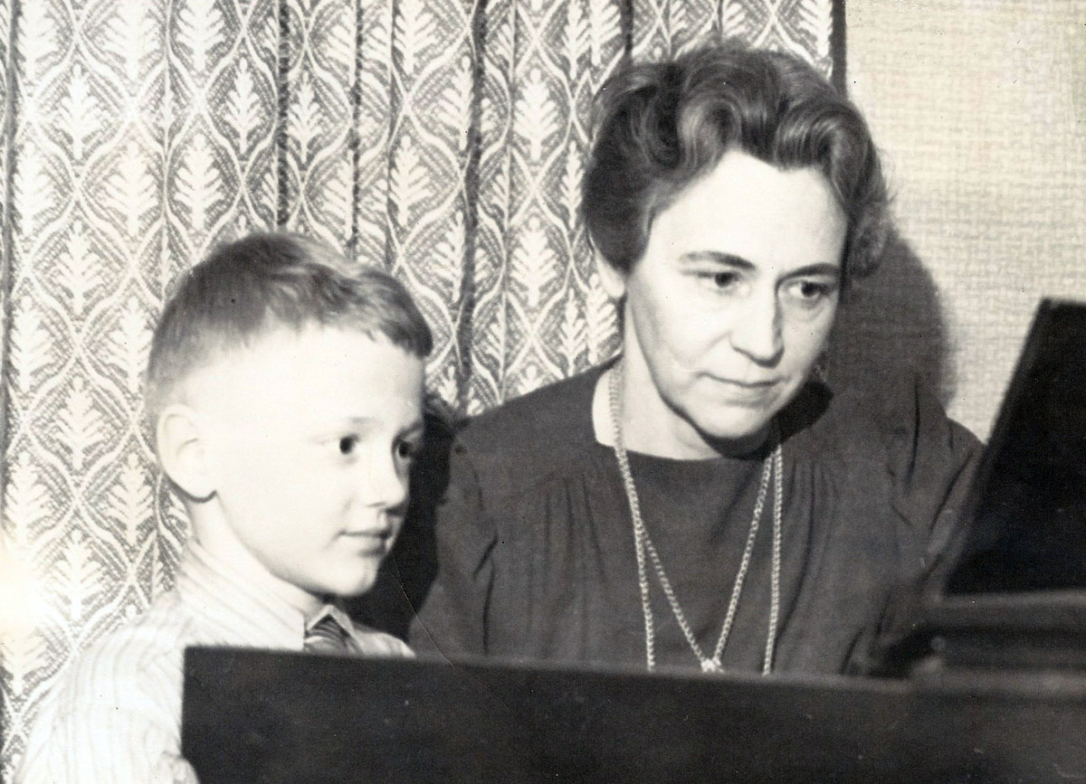 - ca 1938; at Caryl & Celia Holton’s, 128 East First Street, London, Ohio; David & Celia Holton at piano. [1938-00-00-holton-celia-david-1]