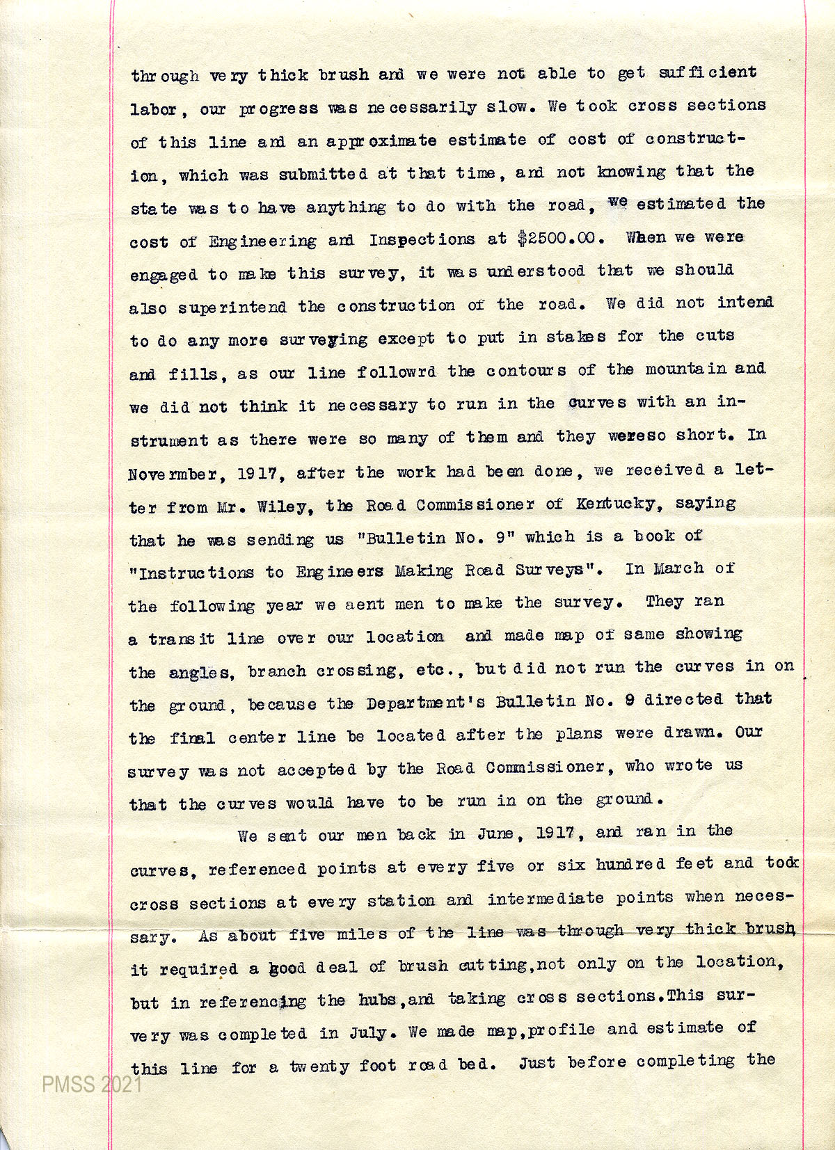 1919_03_31a Page 2. When the surveying was completed in November 1917, it was partially re-done in June & July according to “Bulletin No. 9” from Wiley titled “Instructions to Engineers Making Road Surveys.”