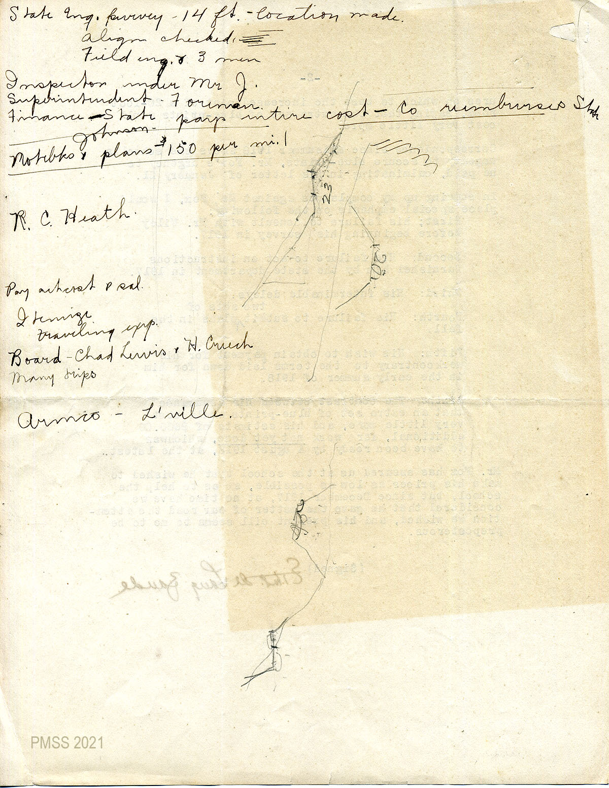 1919_01_23b (062) N.D. Reverse side of page 2. Handwritten notes concerning road expenses; also, sketches of the Road.
