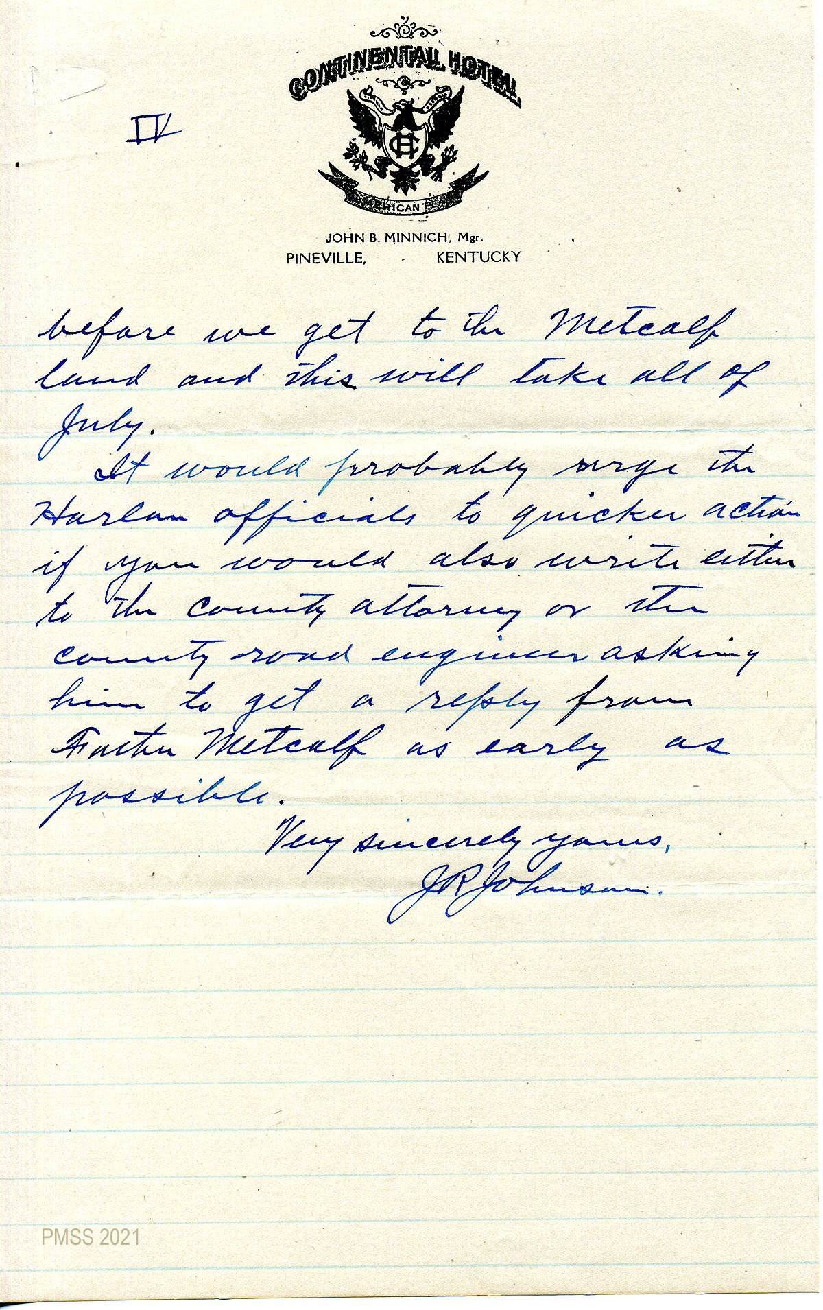 1919_06_16c (Page 4) To hasten the procedure Johnson suggests urging the Harlan officials, as well as the county attorney or the county road engineer to get a reply from James Metcalf.