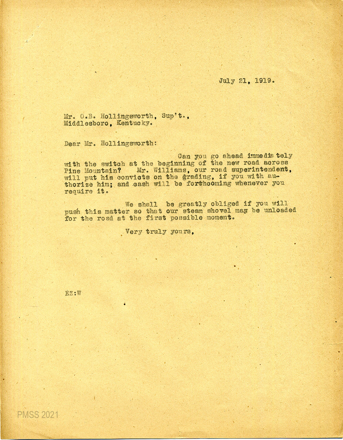 1919_07_22 July 22, 1919. To Zande from Hollingsworth, asking her if she wants the siding constructed “on account of the Pine Mountain Settlement School.”