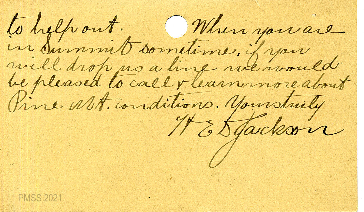 1919_05_24a (Side 2). He would like to call on her, if she is ever in Summit, to learn more about PMSS.