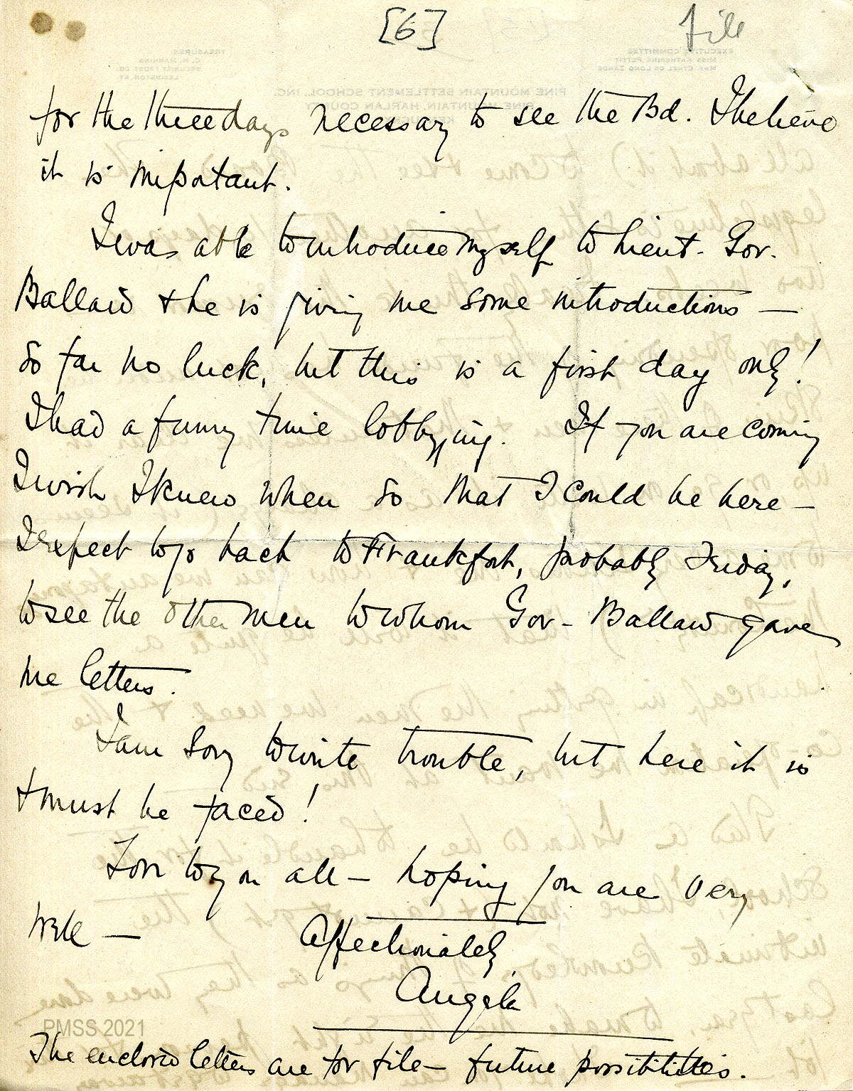 [Note: Letters from PMSS staff in the PMSS Collections are carbon copies, typewritten, unsigned, and meant for the Office files. The original signed copies were sent to the correspondents. The initials at the bottom left of most PMSS letters indicate the writer (along with initials of the secretary). For example, “EZ” are the initials for Ethel de Long Zande. Letters to PMSS staff are typewritten originals unless indicated otherwise.]