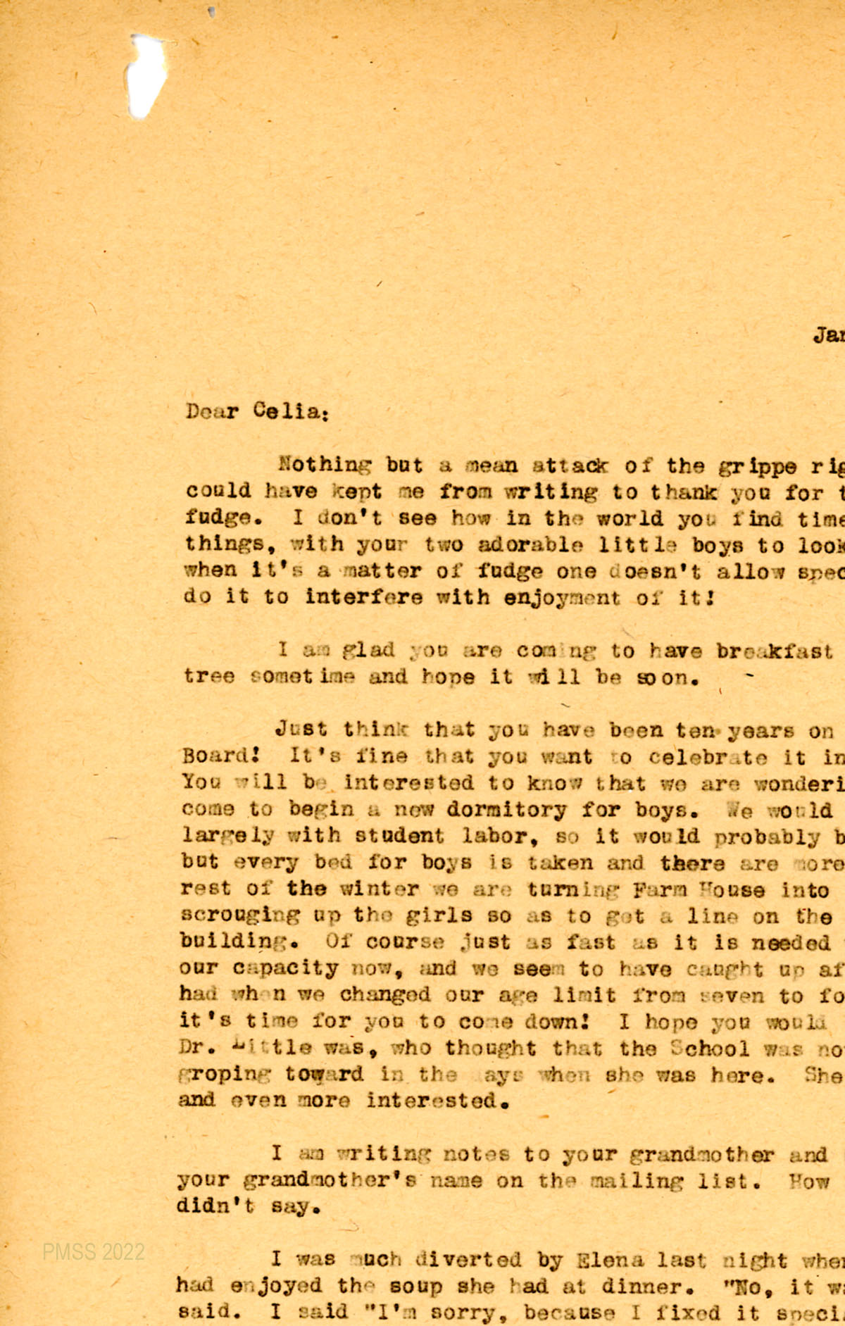 [Note: Letters from PMSS staff in the PMSS Collections are carbon copies, typewritten, unsigned, and meant for the Office files. The original signed copies were sent to the correspondents. The initials at the bottom left of most PMSS letters indicate the writer (along with initials of the secretary). For example, “EZ” are the initials for Ethel de Long Zande.]