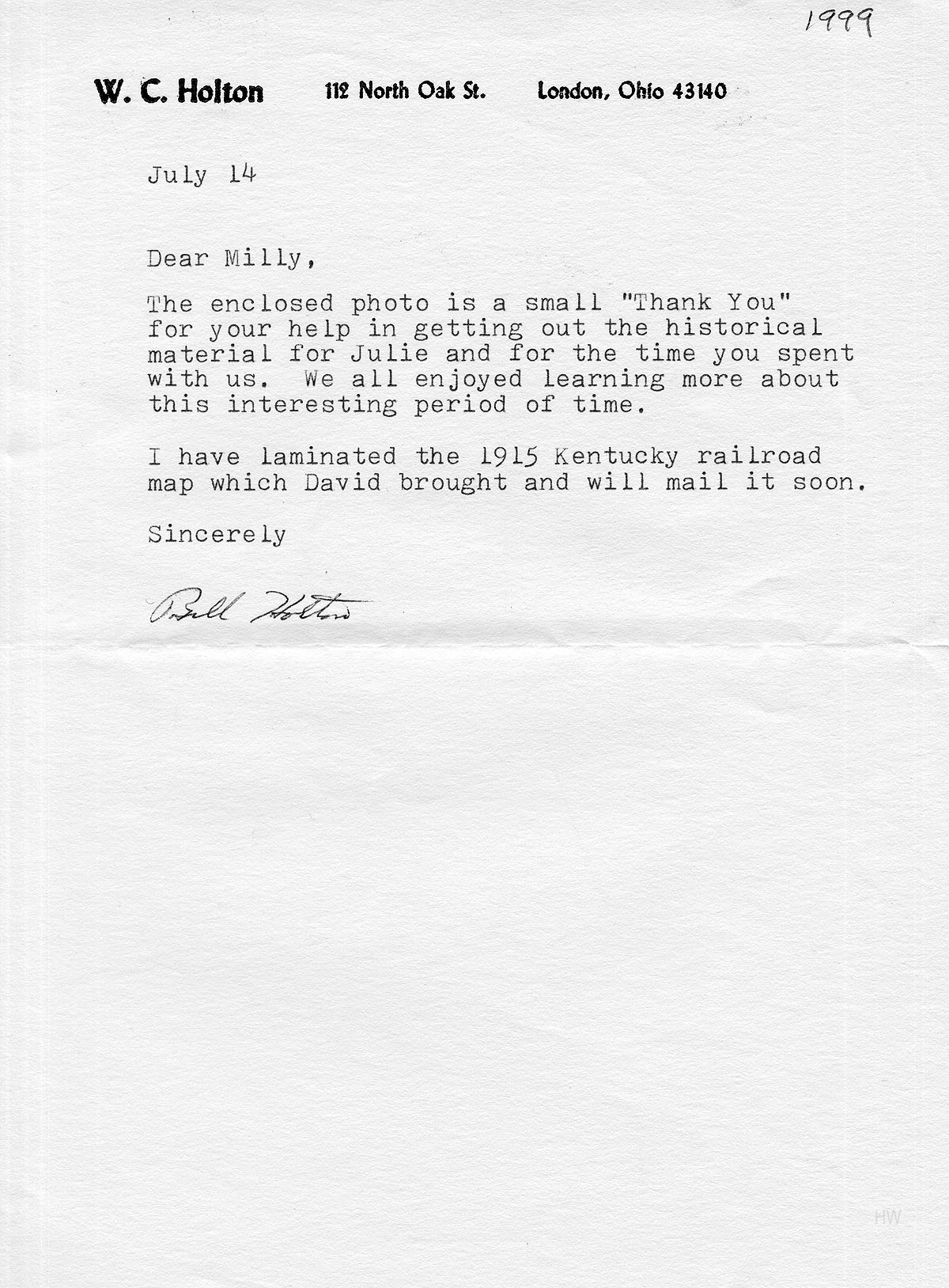 The enclosed photo is a small “Thank You” for your help in getting out the historical material for Julie and for the time you spent with us. We all enjoyed learning more about this interesting period of time.