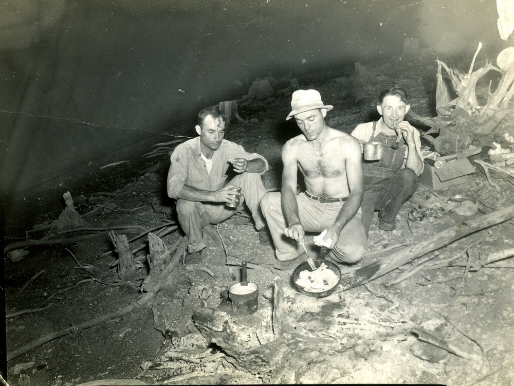 - William Hayes, John Hayes, and Jess Cornett at Norris Lake, c. 1940s. [hay0116.jpg]