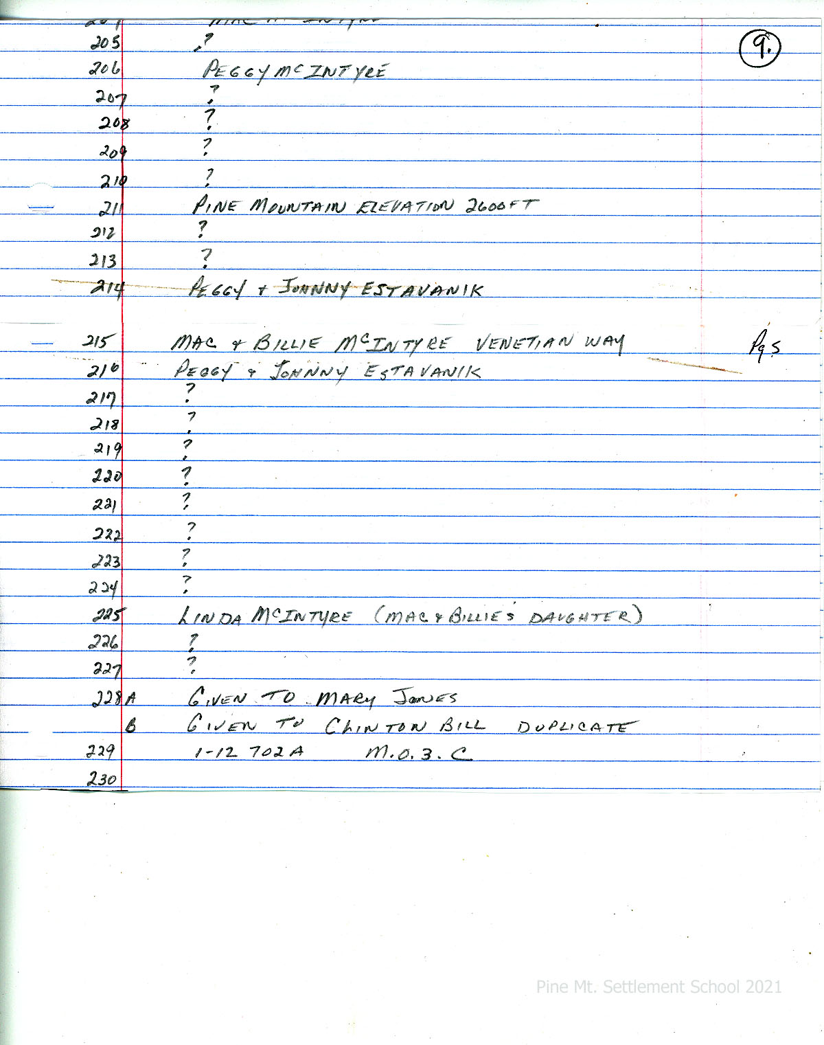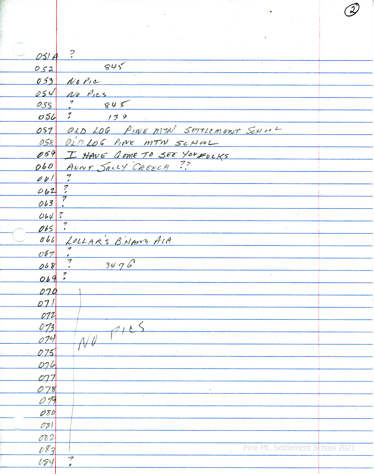 The transcribed text below has been slightly edited for clarity. The lists are in the order of the filenames of the images. For example, “creech_columbus_photolist_001” is the filename of the first image and is the first transcribed list. Identification was completed at the time of donation and is speculative.