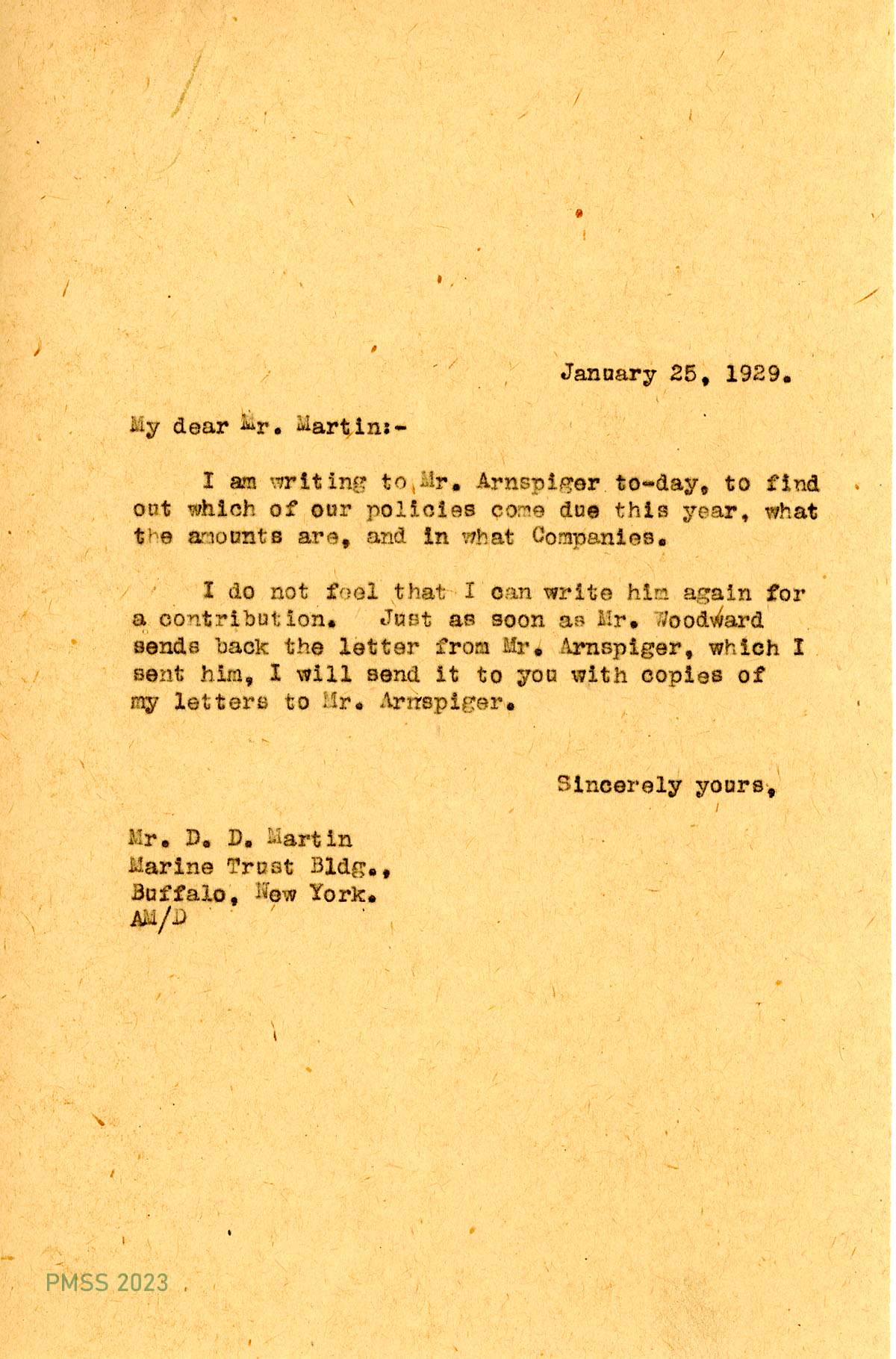DARWIN D. MARTIN 1929 Correspondence Part 1