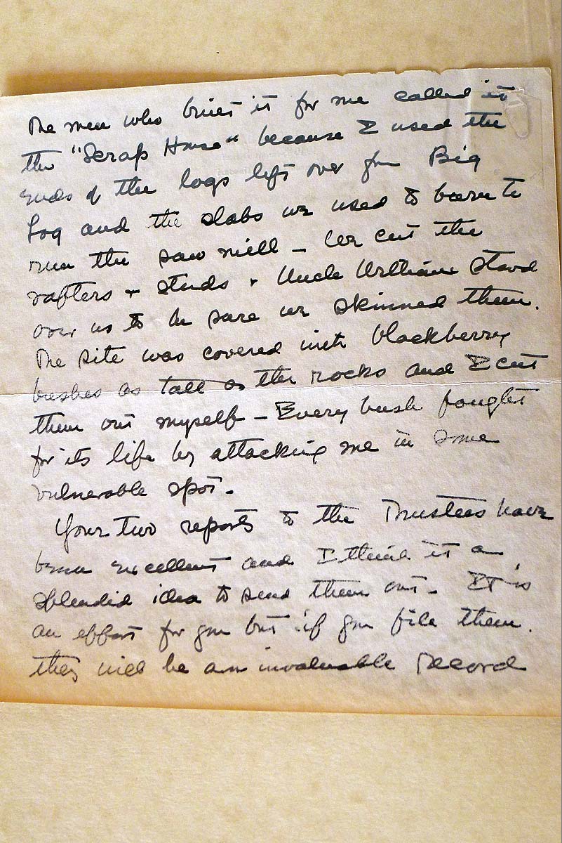 He thinks that if we do just as you suggested — begin to straighten the creek nearby the swimming pool on to the place just in front of the office — that they will solve the problem of flooding our garden. He told Mr. Browning [Farm Manager] just how to do it, although he said what Mr. Browning had suggested was just what he would have done. And they think it will cost around $500.00. We are beginning it just as soon as we get more of our farm work done if you still want us to do it. I shall be glad to hear from you about it right away.