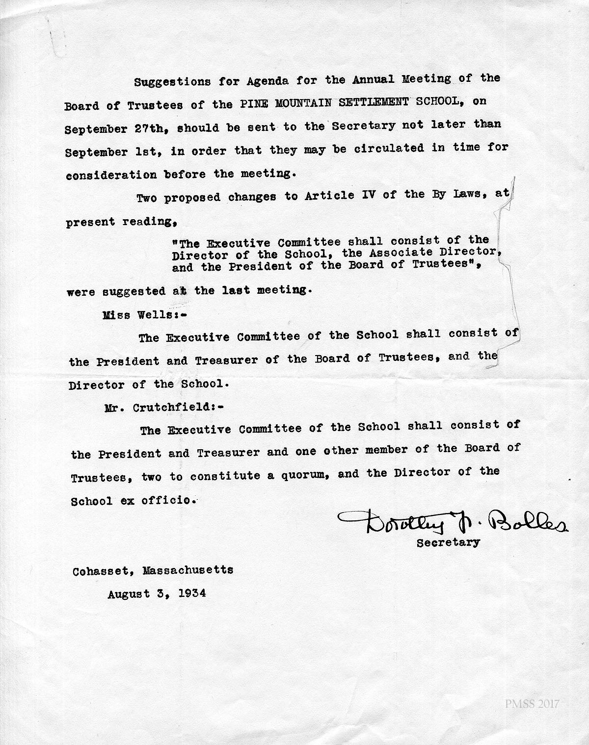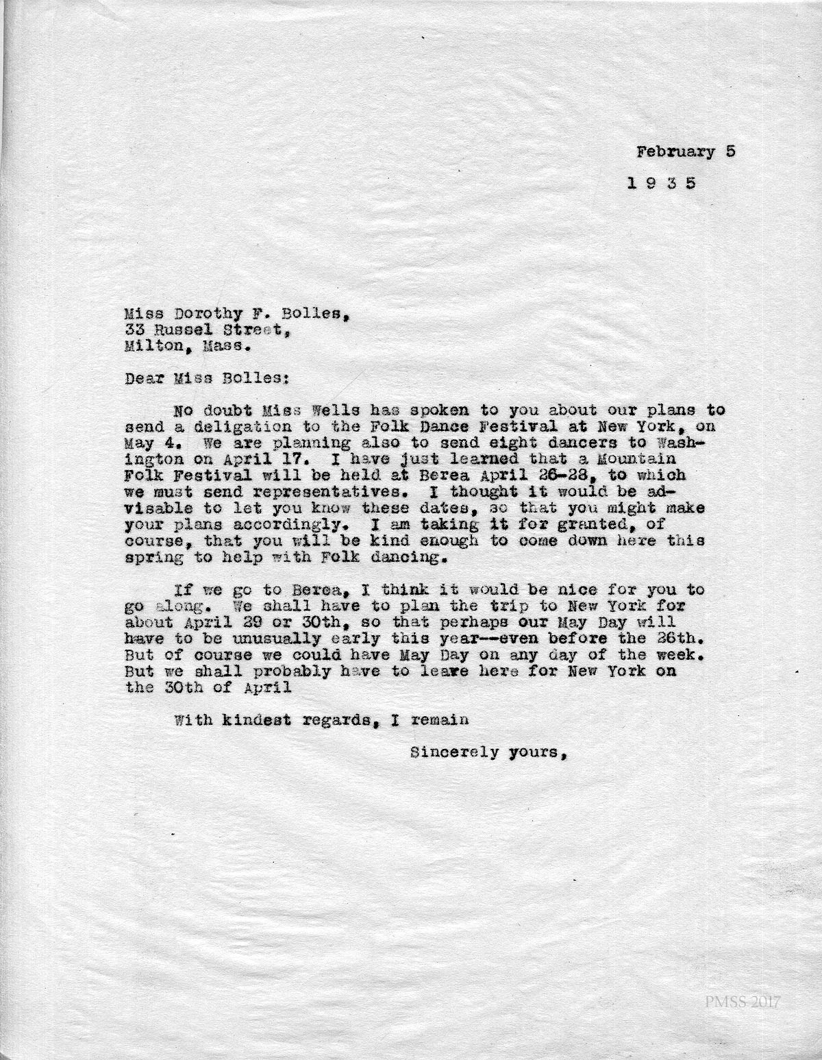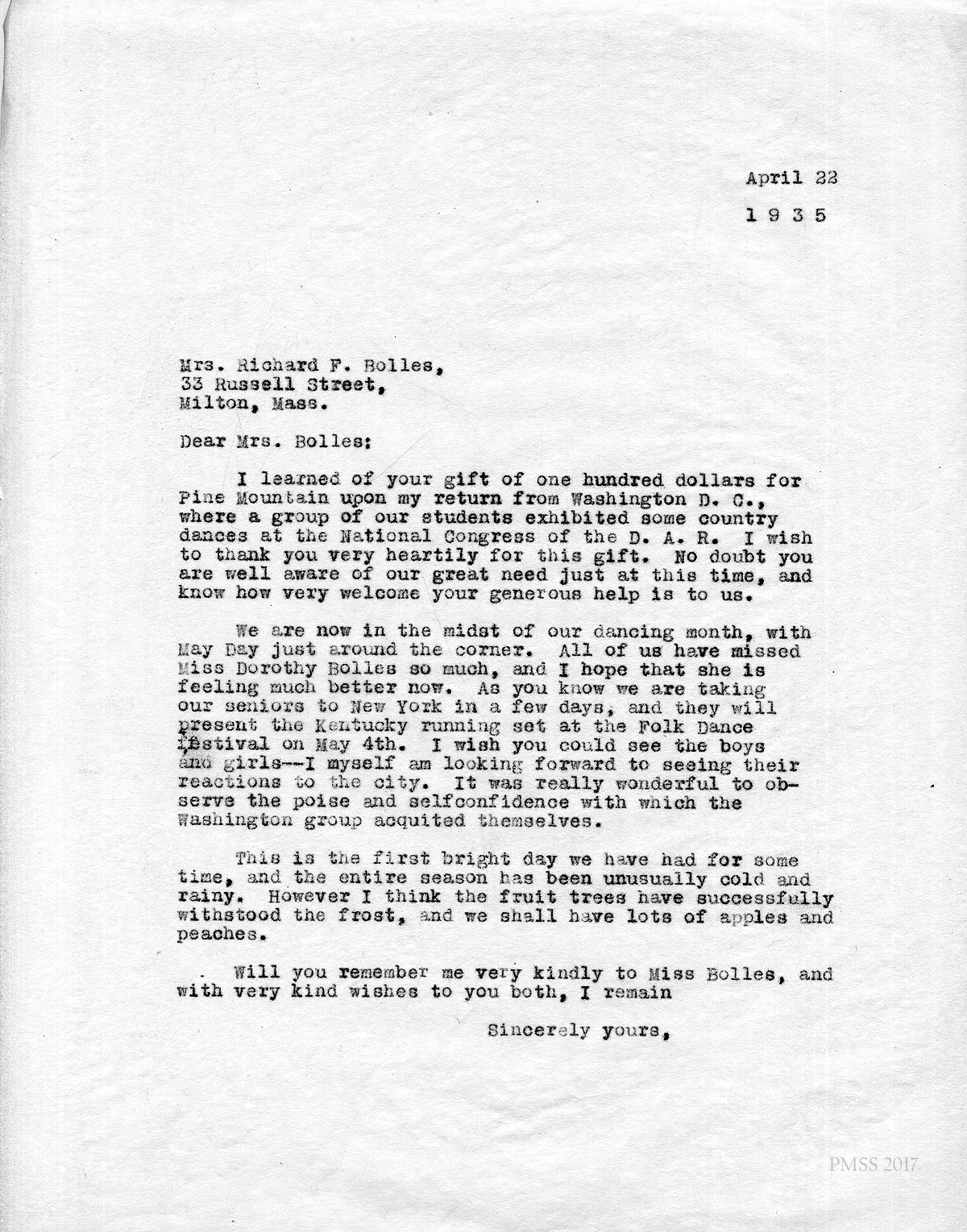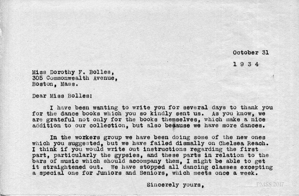 Dorothy Bolles, PMSS Dance Instructor 1925-1935