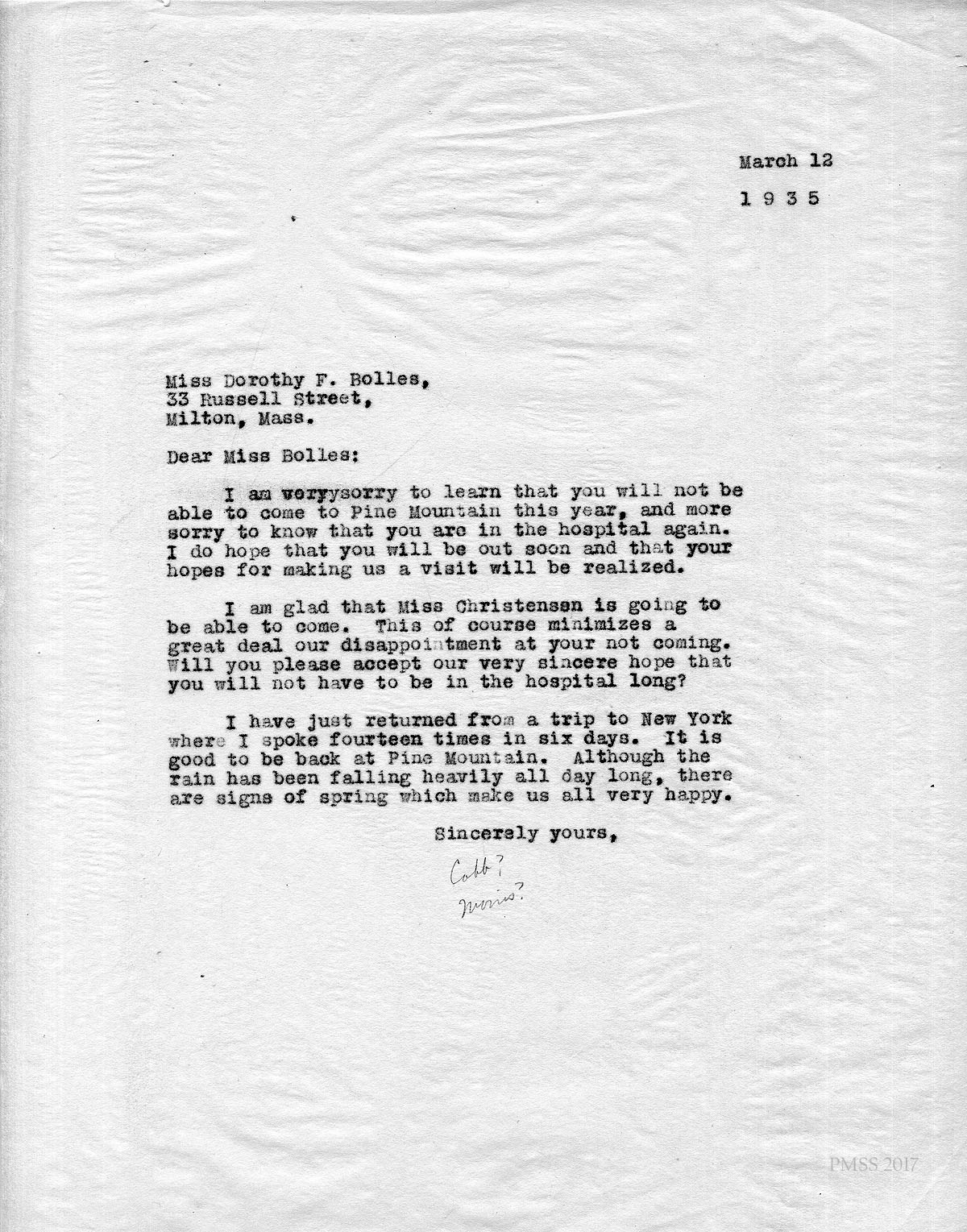 DOROTHY BOLLES Correspondence II 1931 to 1935