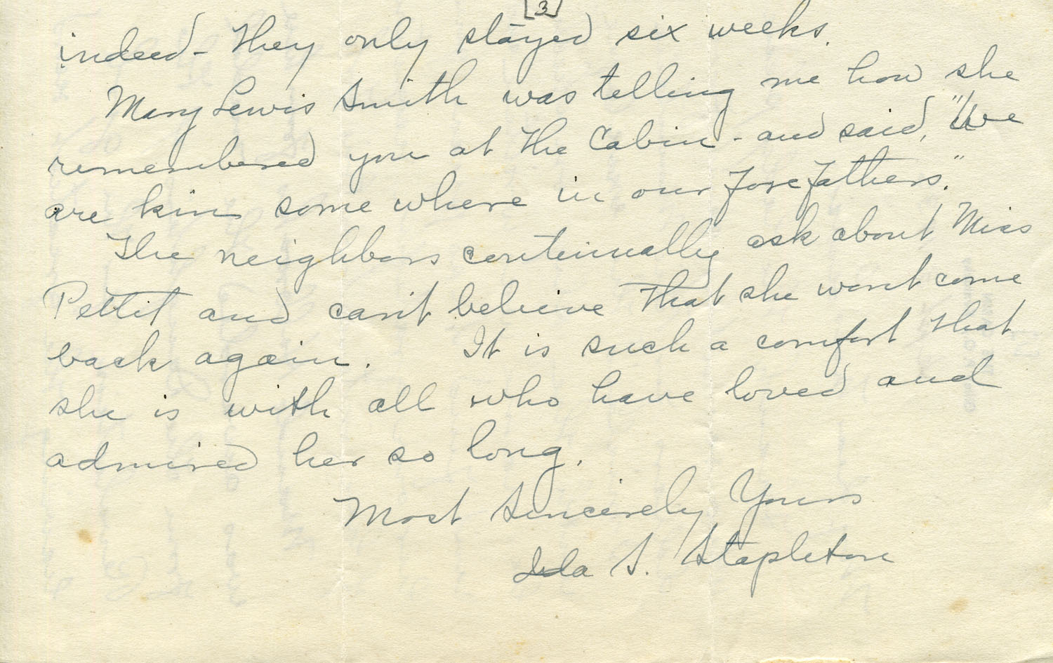 STAPLETON LETTER – September 1936, “My Dear Miss Lewis” [3 pages]