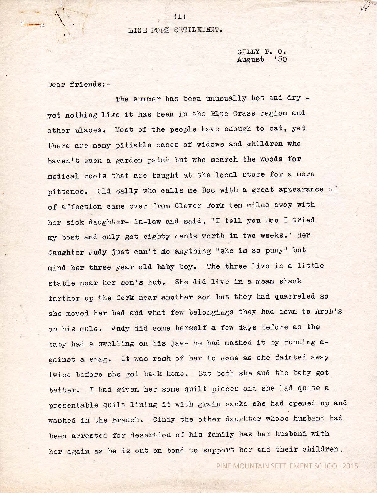 The summer has been unusually hot and dry – yet nothing like it has been in the Blue Grass region and other places. Most of the people have enough to eat, yet there are many pitiable cases of widows and children who haven’t even a garden patch but who search the woods for medical roots that are bought at the local store for a mere pittance. Old Sally who calls me Doc with a great appearance of affection came over from Clover Fork ten miles away with her sick daughter-in-law and said, “I tell you Doc I tried my best and only got eighty cents worth in two weeks.” Her daughter Judy just can’t do anything “she is so puny” but mind her three year old baby boy. The three live in a little stable near her son’s hut. She did live in a mean shack farther up the fork near another son but they had quarrelled so she moved her bed and what few belongings they had down to Arch’s on his mule. Judy did come herself a few days before as the baby had a swelling on his jaw – he had mashed it by running against a snag. It was rash of her to come as she fainted away twice before she got back home. But both she and the baby got better. I had given her some quilt pieces and she had quite a presentable quilt lining it with grain sacks she had opened up and washed in the Branch. Cindy the other daughter whose husband had been arrested for desertion of his family has her husband with her again as he is out on bond to support her and their children. He must have found some work as she has not been to the Cabin for help for some time. The children were all sick with anemia so we kept them on cod liver oil besides the corn meal for some months.