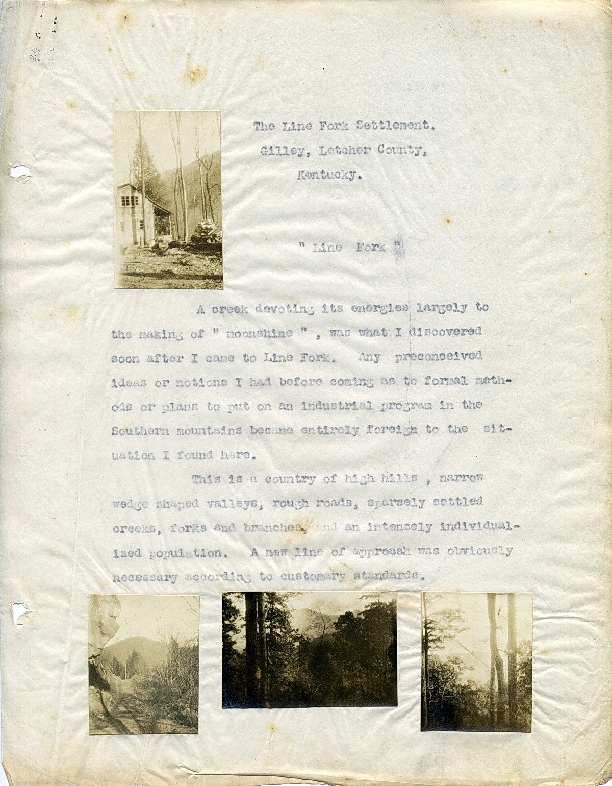 A creek, devoting its energies largely to the making of “moonshine,” was what I discovered soon after I came to Line Fork. Any preconceived ideas or notions I had before coming as to formal method or plans to put on an industrial program in the Southern Mountains became entirely foreign to the situation found here.
