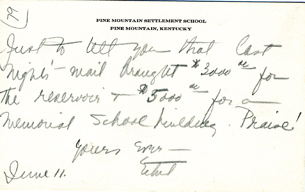 TAGS: Elizabeth Hench correspondence, Katherine Pettit, Ethel de Long, Angela Melville, fundraising, PMSS trustees, Charles N. Manning, Dear Friend letters, Pine Mountain Settlement School, Harlan County, KY