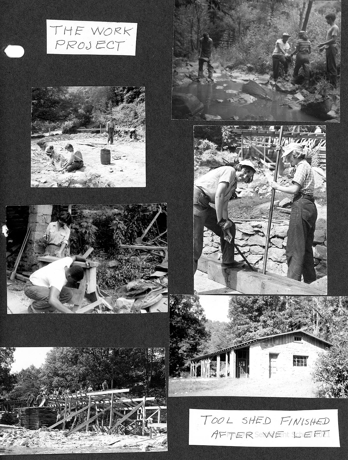 The following Scrapbook was assembled by the Wolf couple of their work with the School. It is a broad account of their individual meaningful work and that of the American Friends Service Committee volunteers who have given of their time to the School over the years. Many items duplicate publications already held within the Archive, but the personal accounts of the couple provide an excellent collected memory of the Work Camp volunteers and of their projects, personal work, and reflections of their time at the School during the 1950s. The Wolfe couple remained long-time friends of the School, the Rogers, and others they encountered while working there.