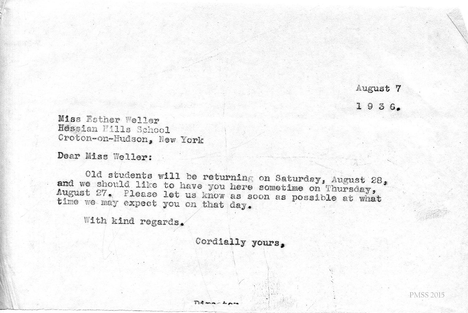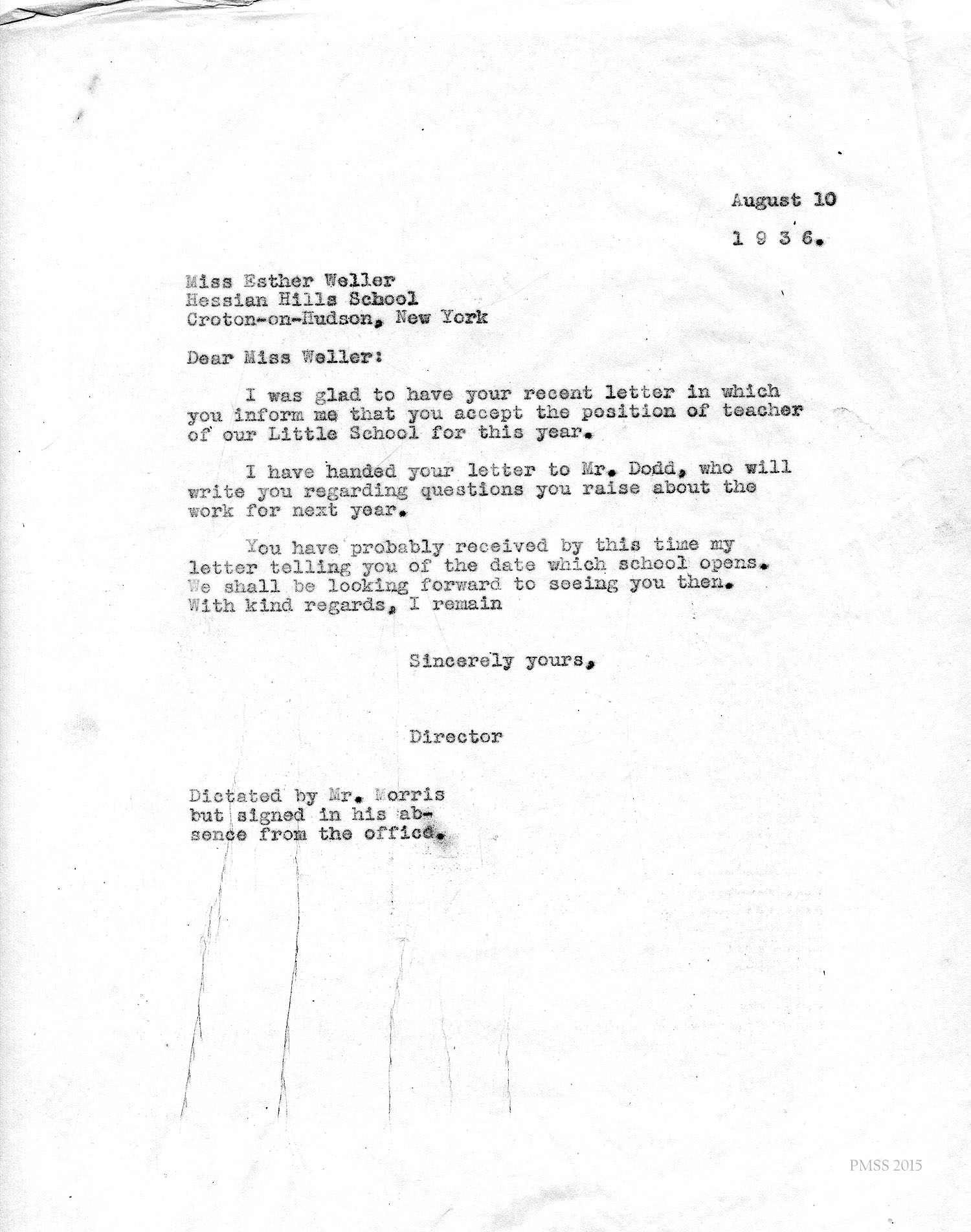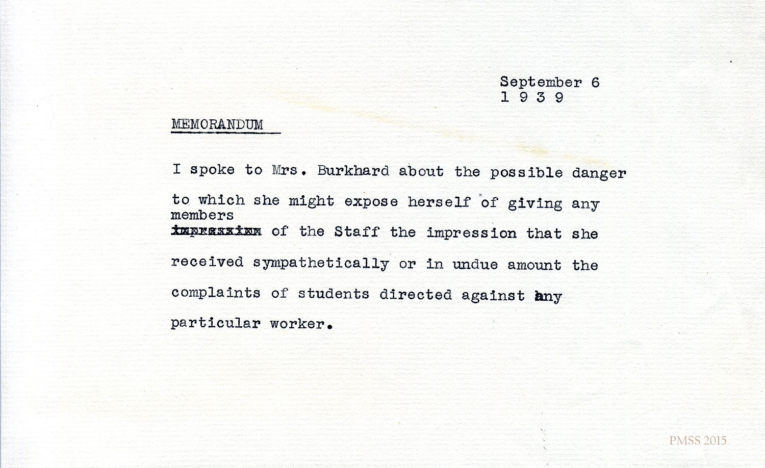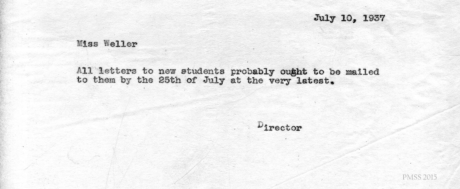 [NOTE: Images of correspondence from the PMSS Office are of unsigned carbon copies of typewritten letters. The original typed letters were signed and sent to the addressee. Non-PMSS letters are either handwritten as indicated or are typewritten originals.]