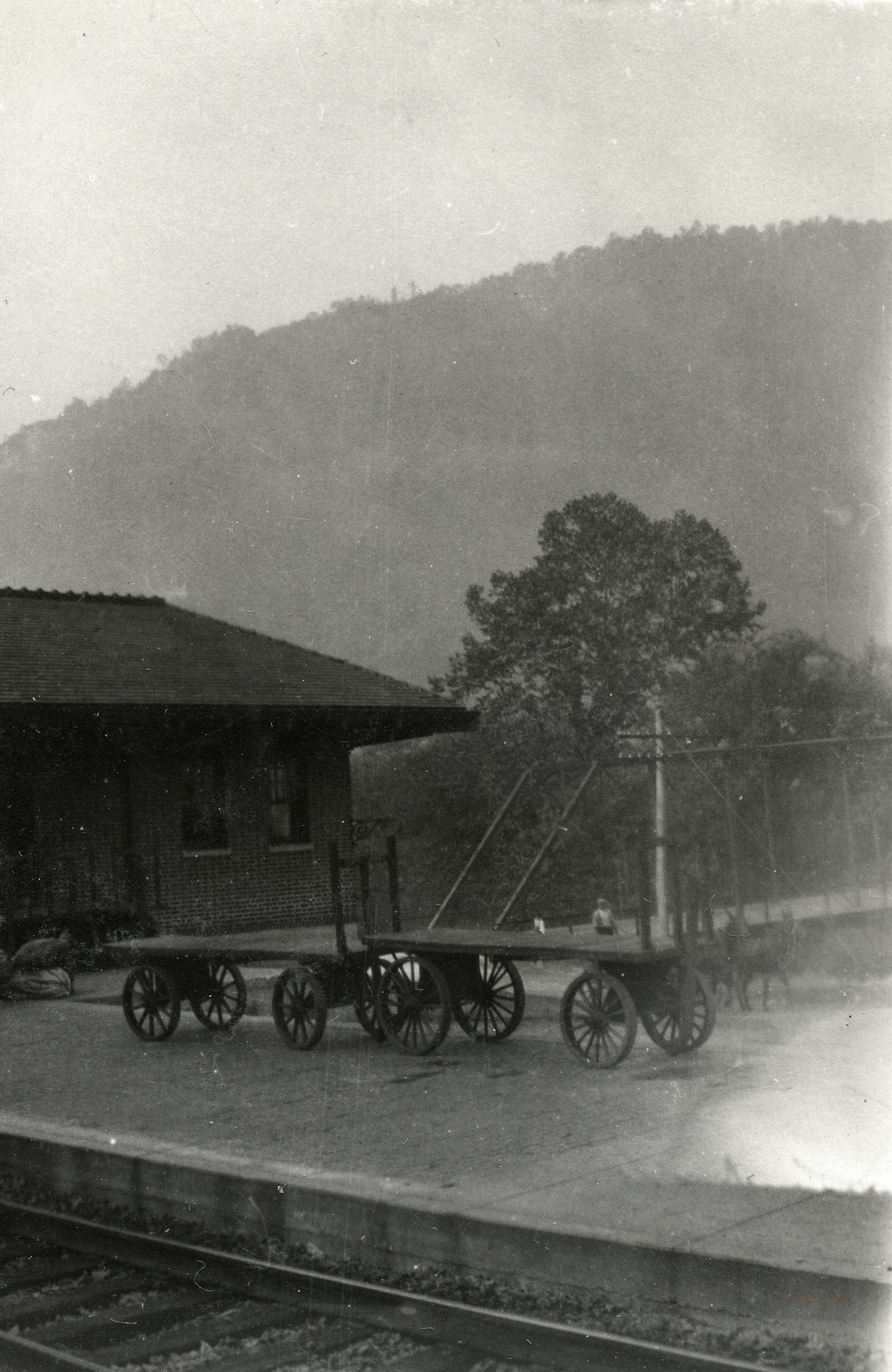 Passenger train arriving at (Laden) station on South side of Pine Mountain c. 1927. [norton_001.jpg]