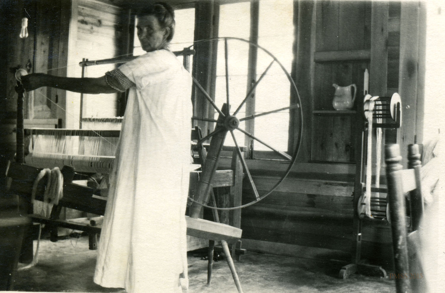 - Woman spinning wool on large spinning wheel. norton_024.jpg