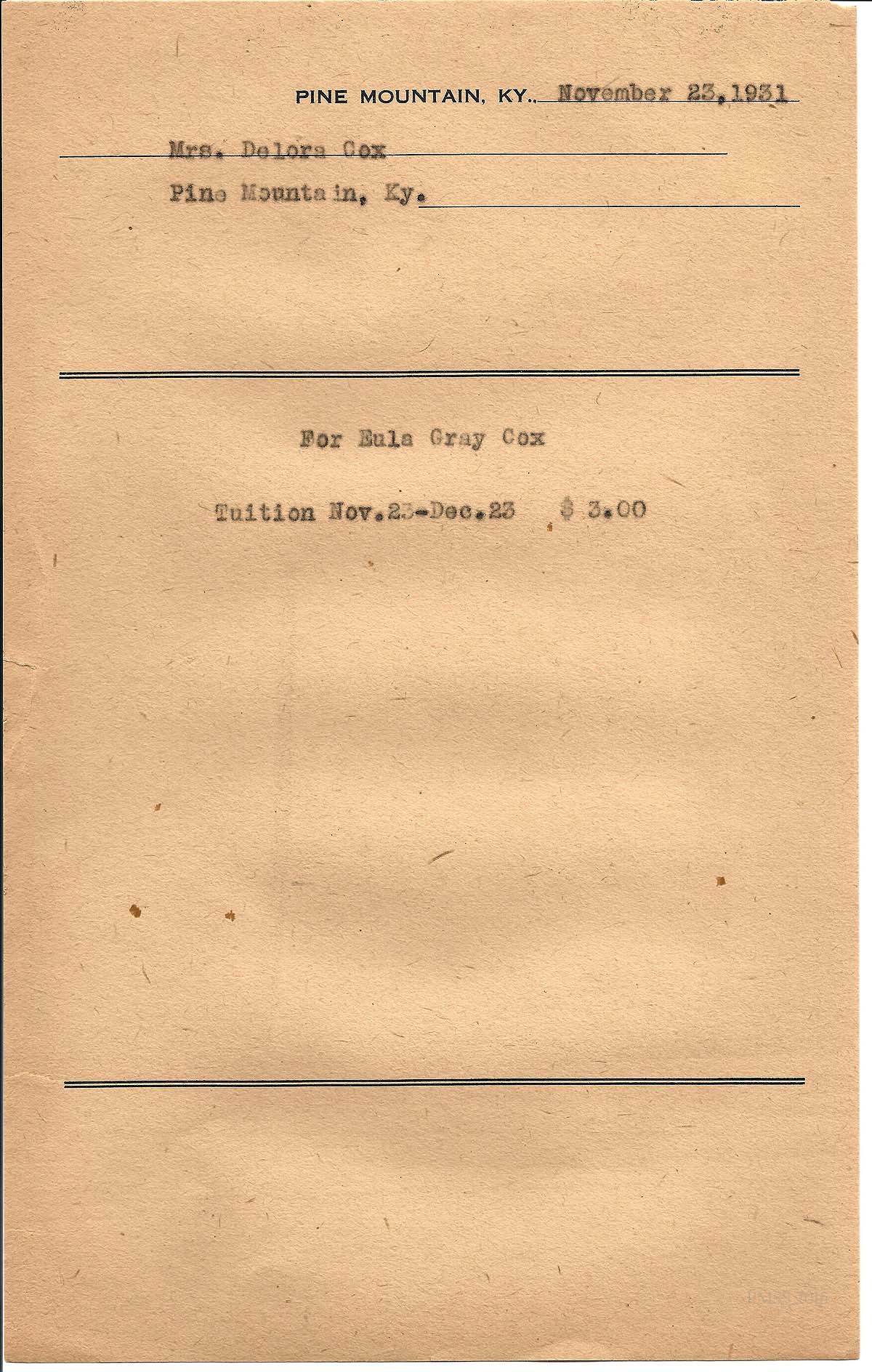 - Eula Gray Cox & Billy Cox Tuition Bill. [cox_e_0011.jpg]