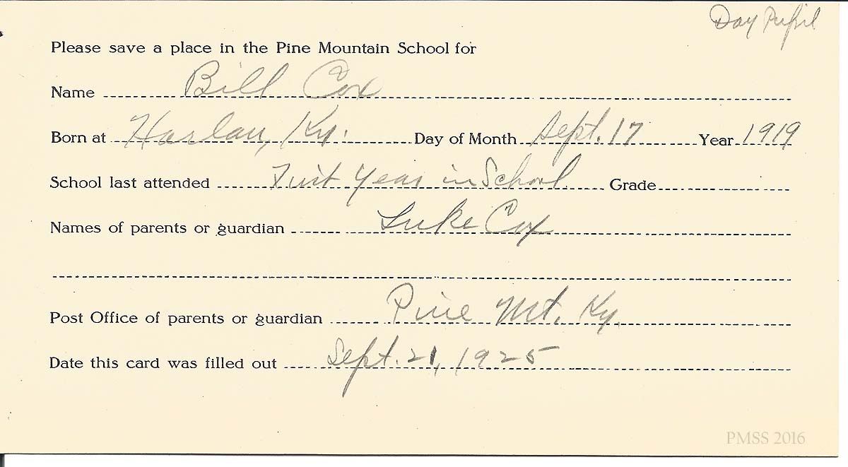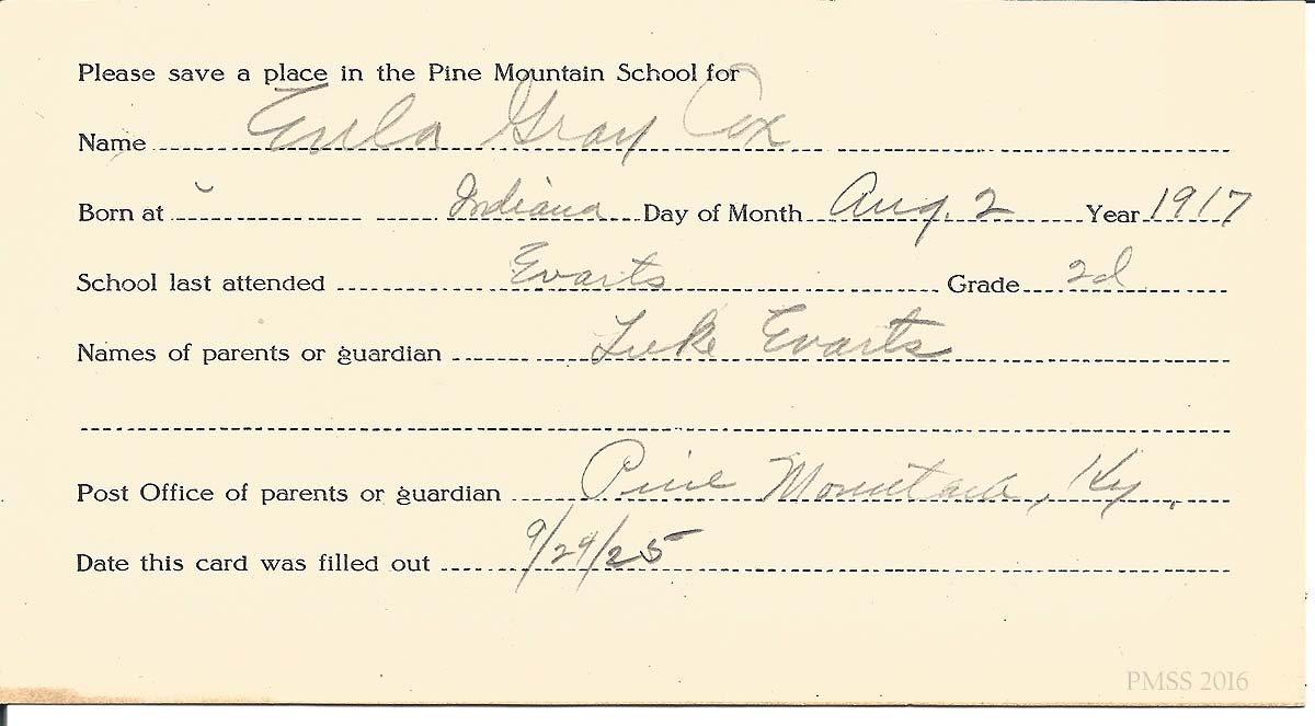 Post Office of parents or guardian Pine Mountain, Ky.