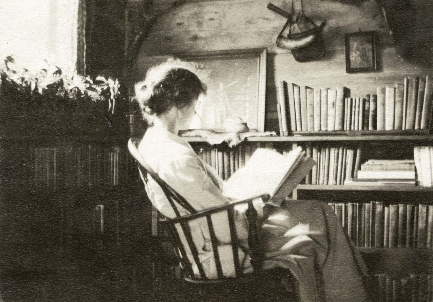 Evelyn K. Wells, reading. [Katherine Pettit Album I.]