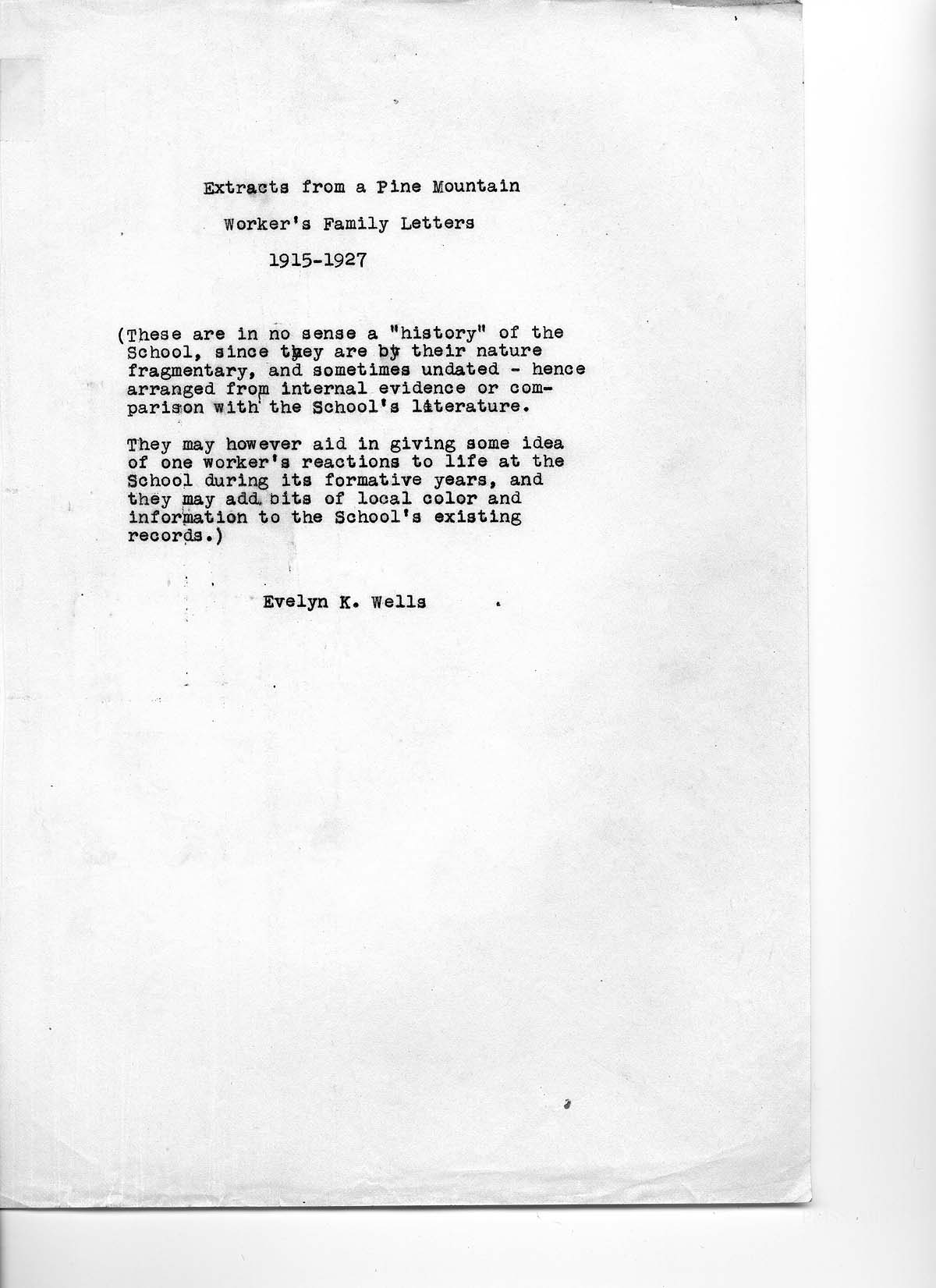 Evelyn Wells describes the “Extracts from a Pine Mountain Worker’s Family Letters 1915-1927″: