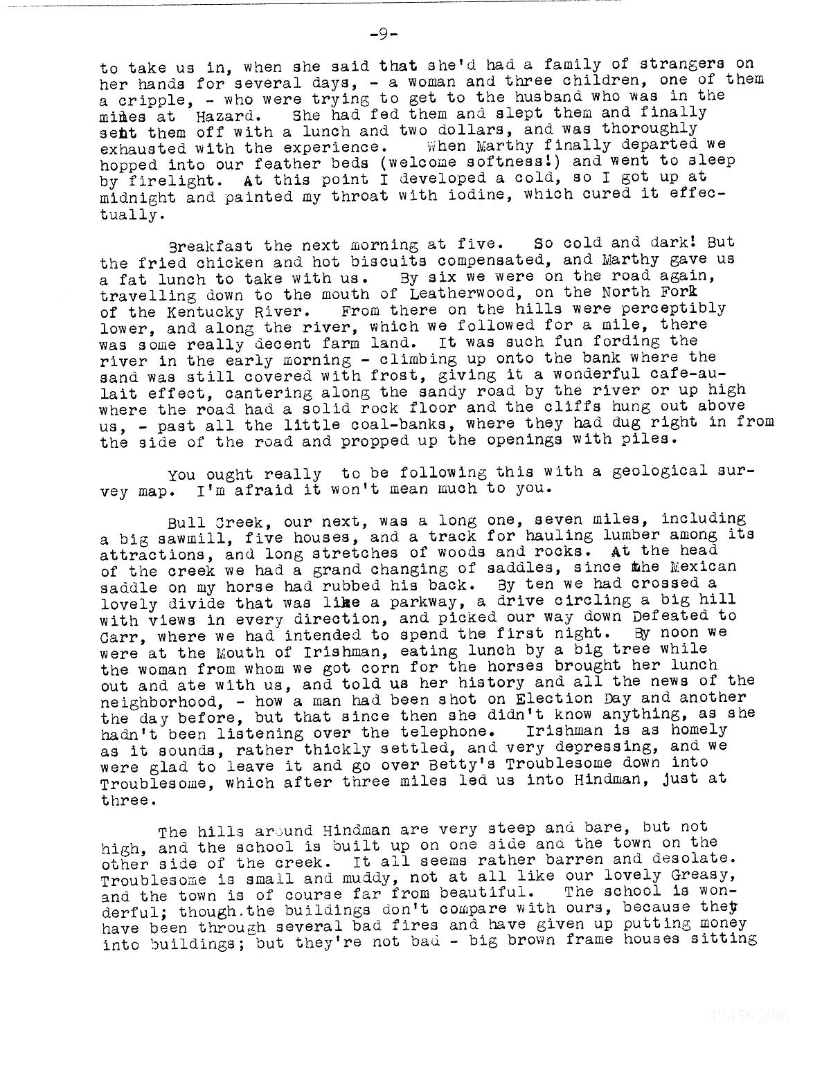 EVELYN K. WELLS 1915 EXCERPTS Horseback to Hindman