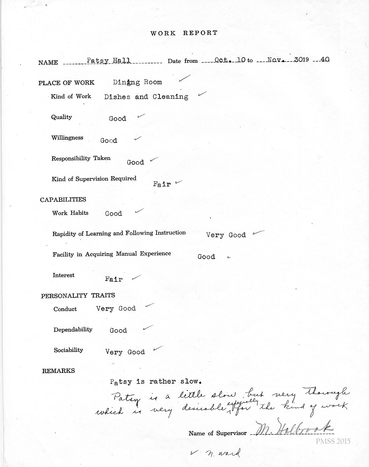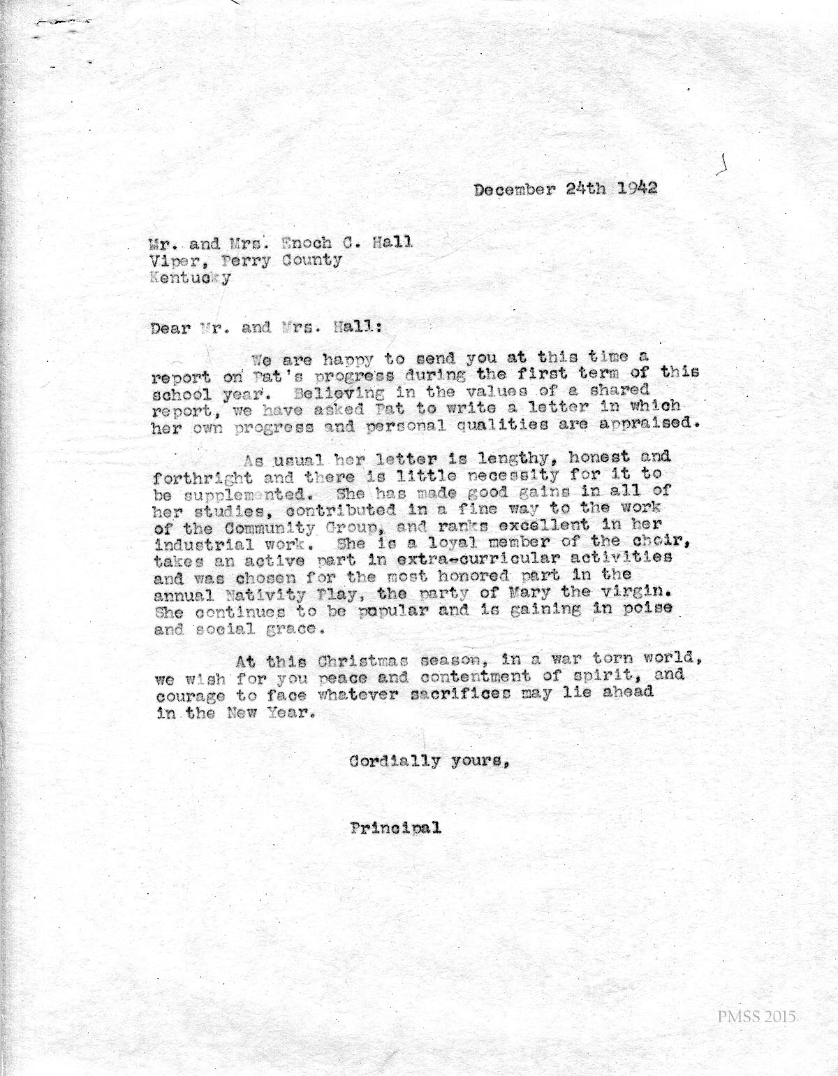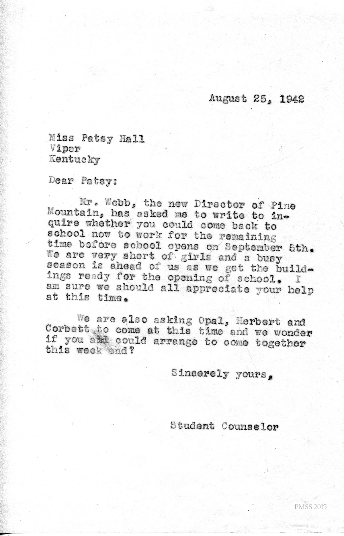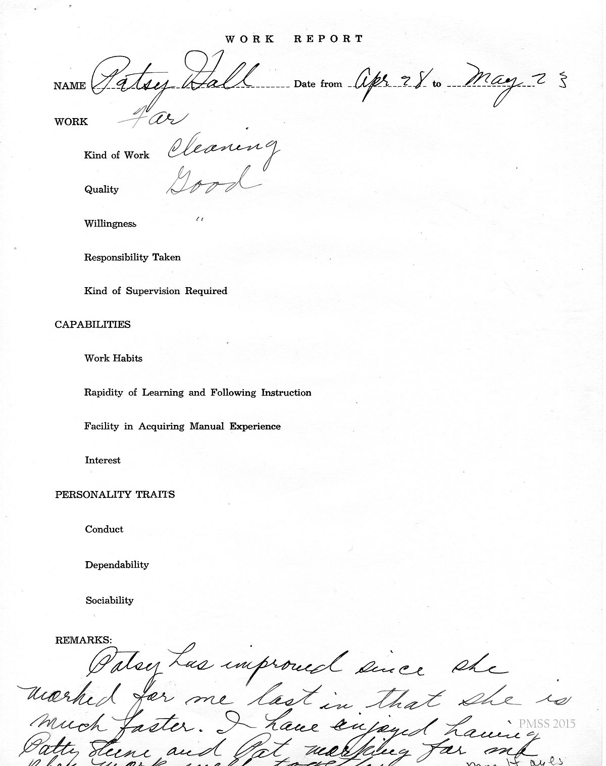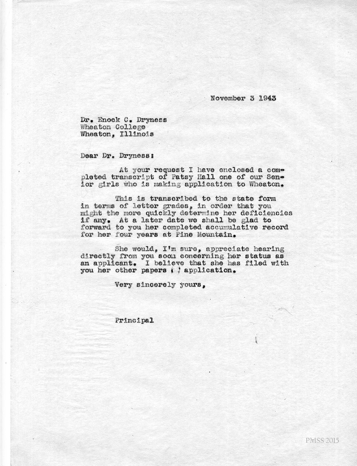 The Flora Patsy Hall correspondence and record at Pine Mountain Settlement School is voluminous, as is sometimes the case when students have many years at the school and many succeeding years in which they are active in School affairs. For example, Patsy was a long-time leader in the Alumni Association of the School. Flora Patsy Hall’s record as a student, is, however, unusually large. It contains one of the later and more documented and extensive records of growth as a student at the school in which each instructor weighed in on the student performance with an annual written report.