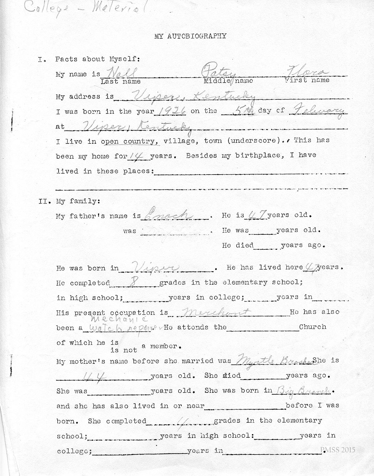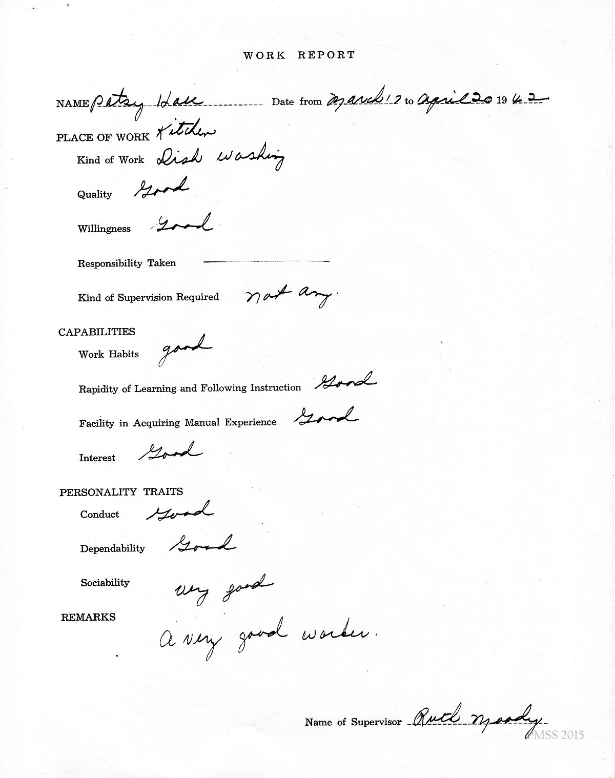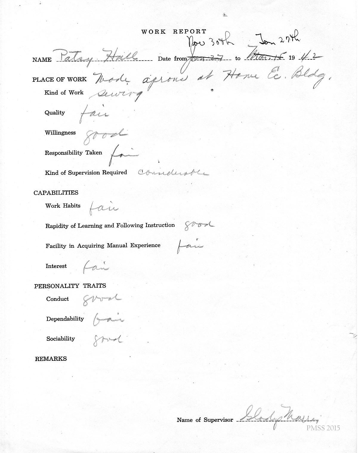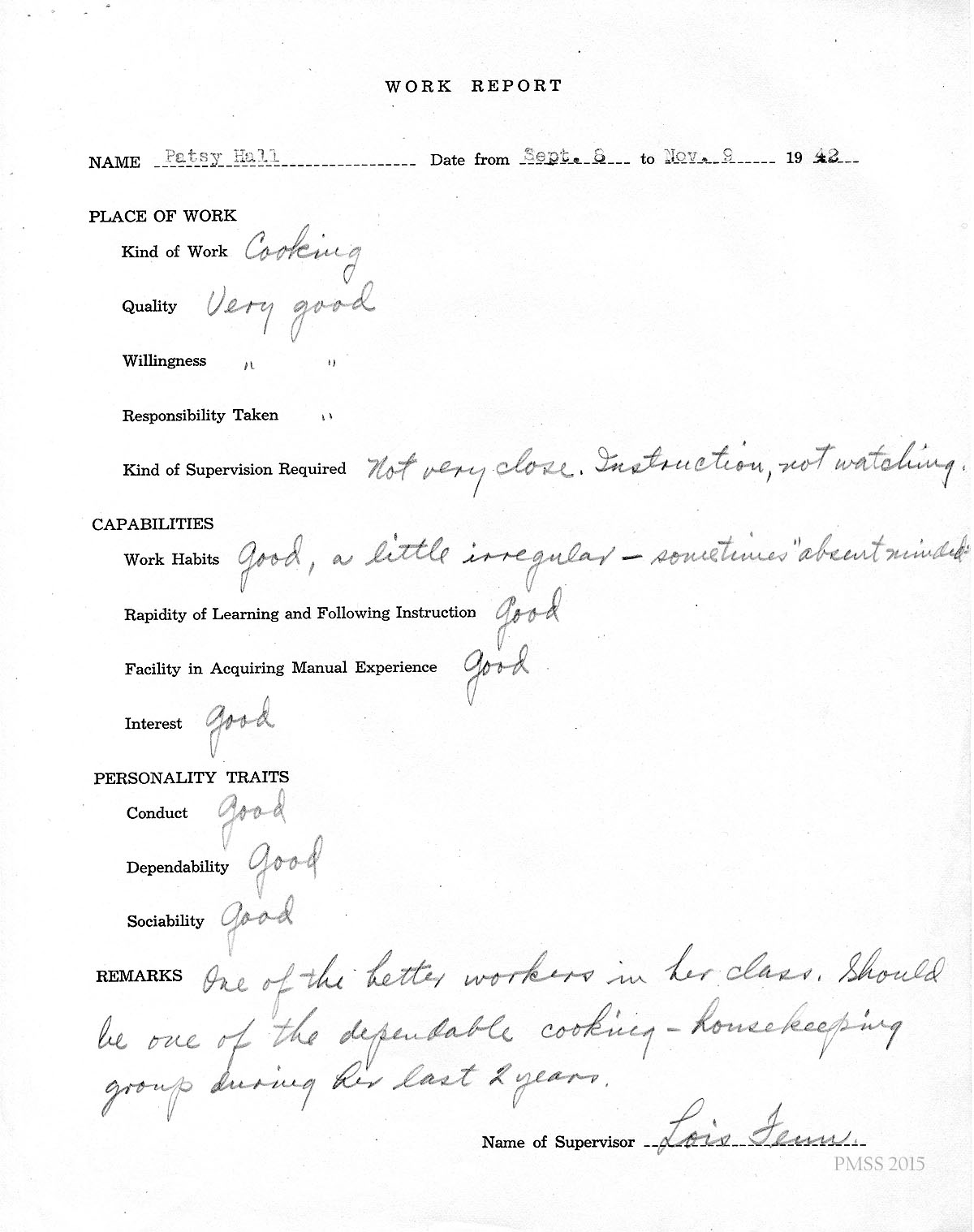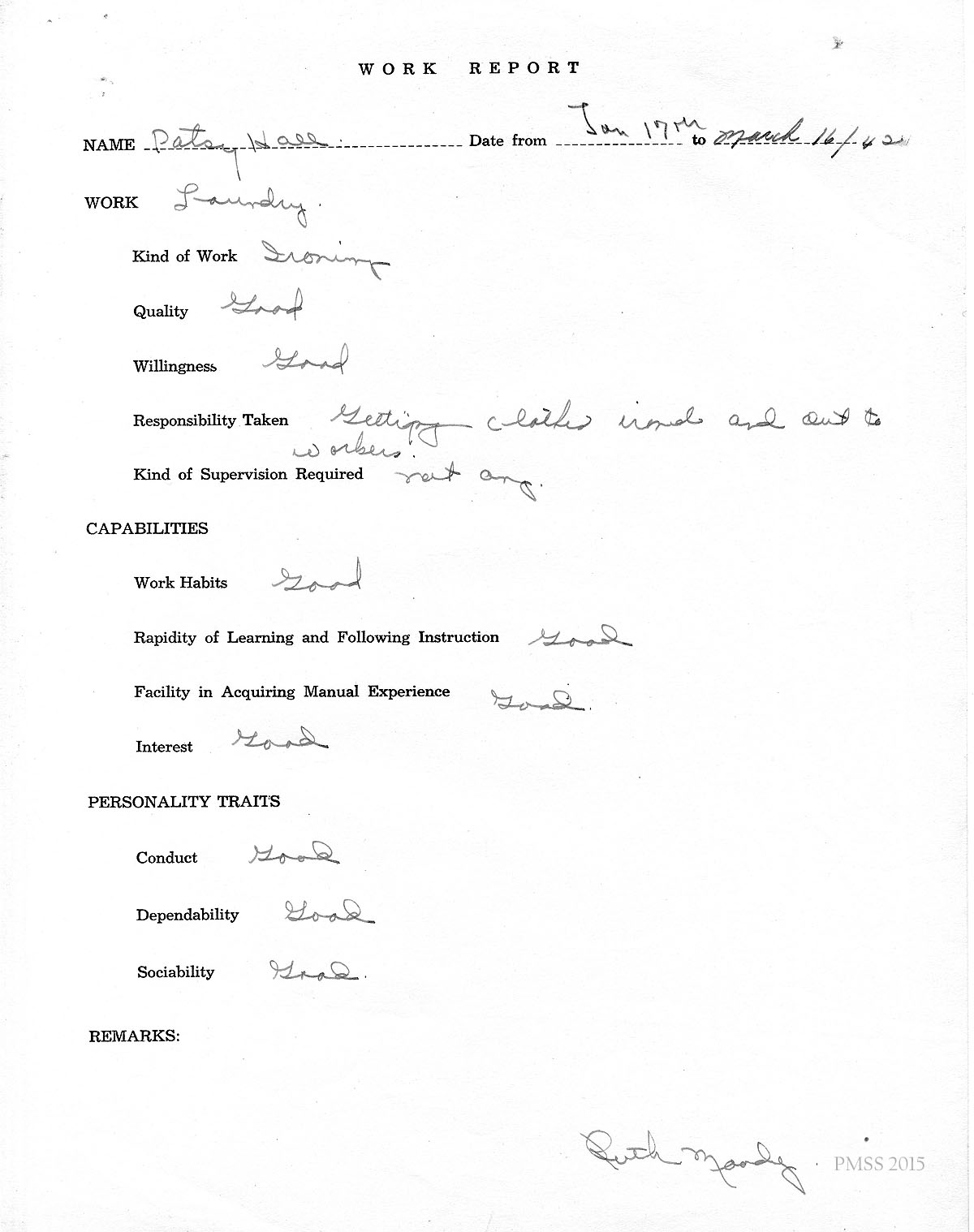 The Flora Patsy Hall correspondence and record at Pine Mountain Settlement School is voluminous, as is sometimes the case when students have many years at the school and many succeeding years in which they are active in School affairs. For example, Patsy was a long-time leader in the Alumni Association of the School. Flora Patsy Hall’s record as a student, is, however, unusually large. It contains one of the later and more documented and extensive records of growth as a student at the school in which each instructor weighed in on the student performance with an annual written report.